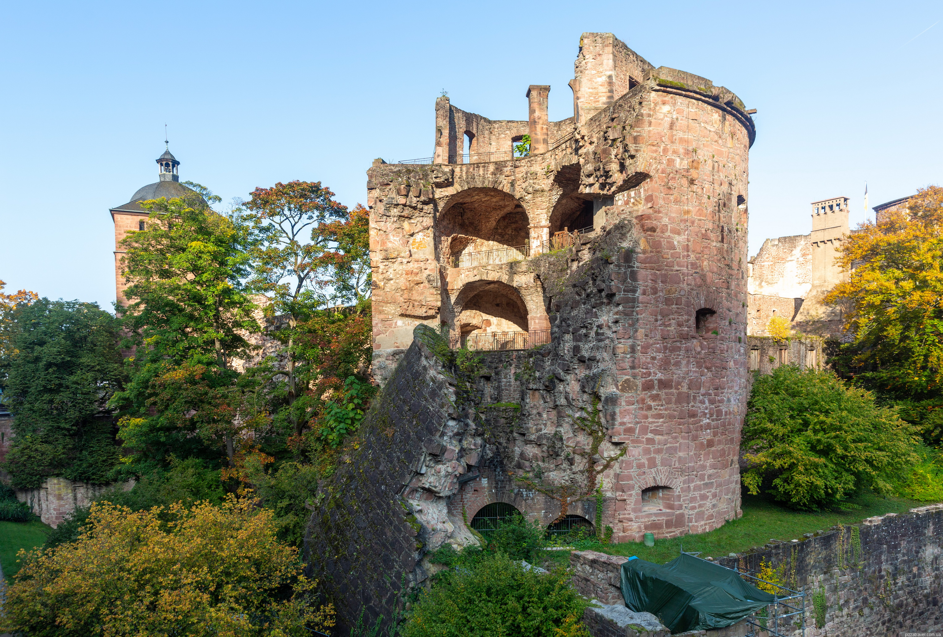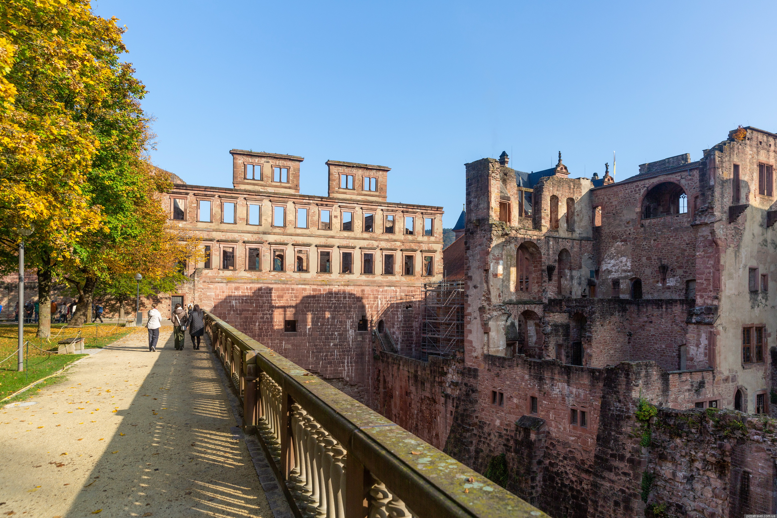 Туристи приїжджають у Хайдельберг подивитися старе місто. Воно знаходиться не в центрі, а на околиці, на березі річки Неккар. Тут на горі розташований замок (1294), головна резиденція курфюрстів Пфальца до кінця 17 століття. У 1693 році замок був перетворений на руїни військами Людовика XIV. Реконструкція була проведена тільки у 1897-1900 роках. Реконструкція проводиться й зараз, що ви можете бачити на фотографіях. Щорічно замок відвідує 1,3 млн туристів, він ділить перше місце за відвідуваністю в Німеччині з замком Нойшванштайн. У підвалах розташована найбільша у світі винна бочка.