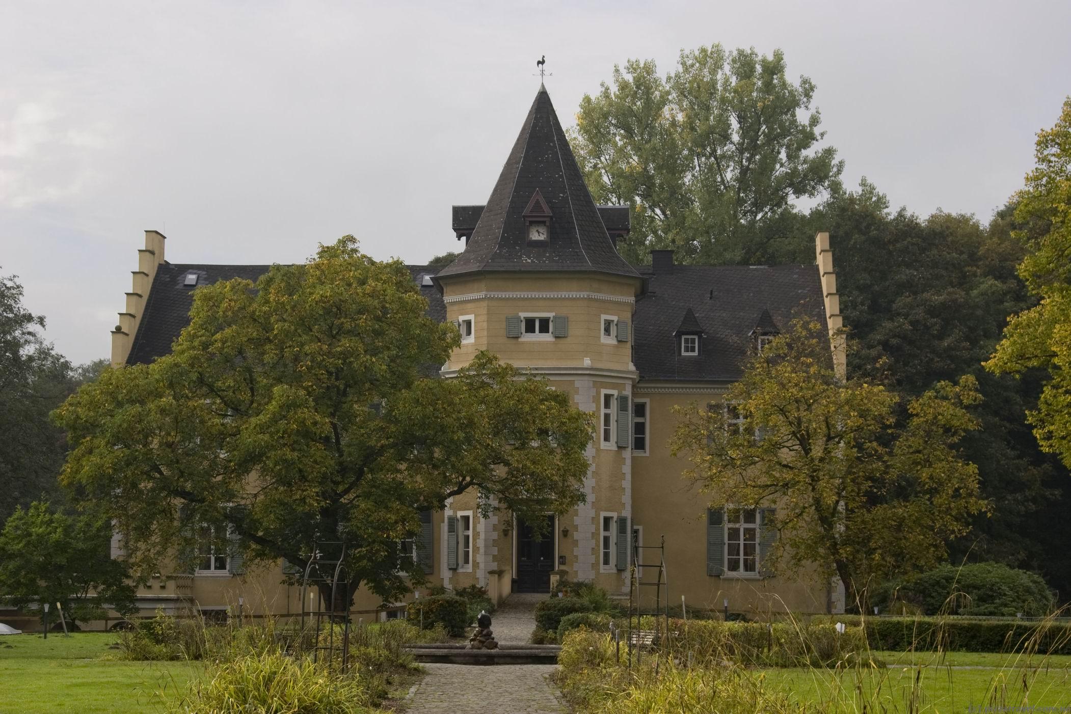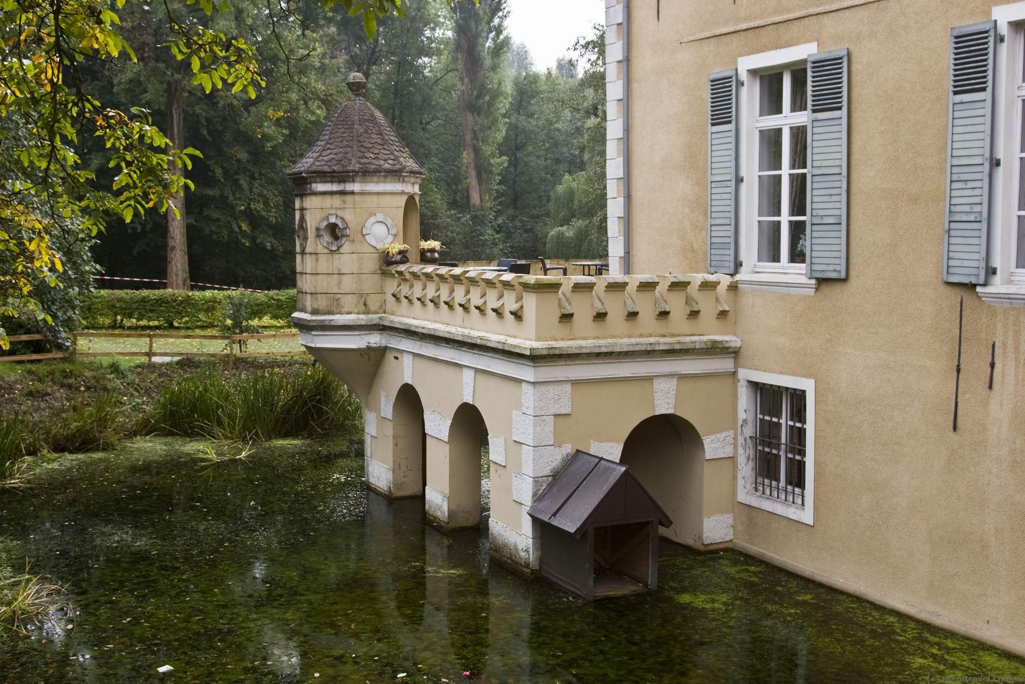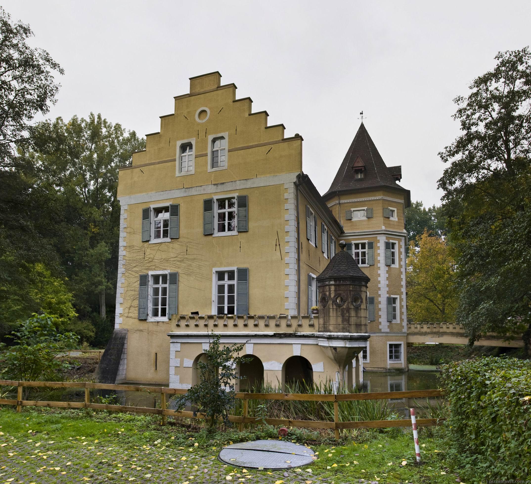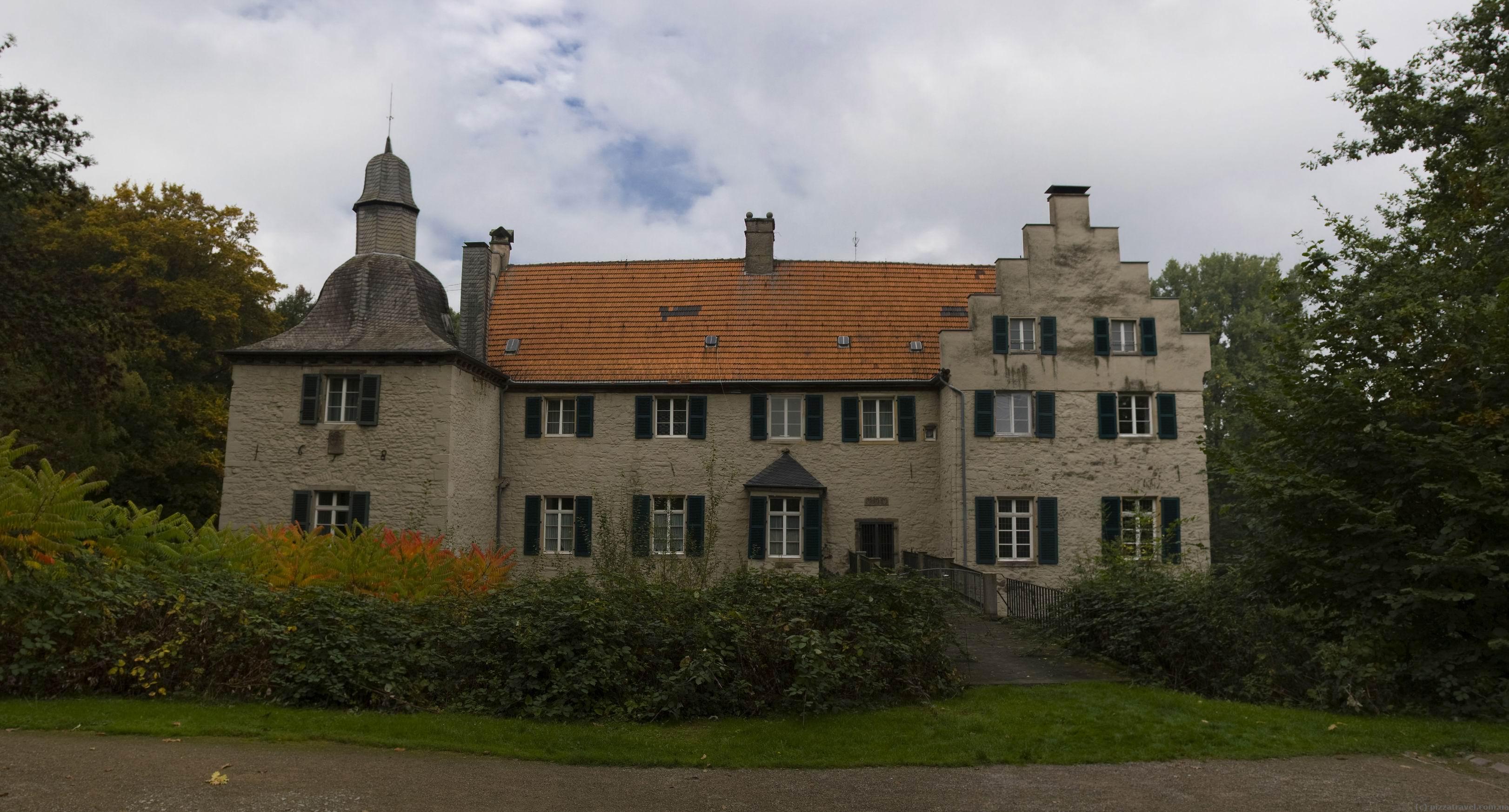 Замість замку Бодельшвінг ми поїхали від станції DO-Westerfilde на автобусі №470 (в напрямку Oespel) до зупинки Haus Dellwig. Там ми подивились особняк на воді, будинок лицаря Дельвіга, що вперше згадується в 1238 році. Будинок стоїть на воді, але його вкрай важко нормально сфотографувати через дерева.