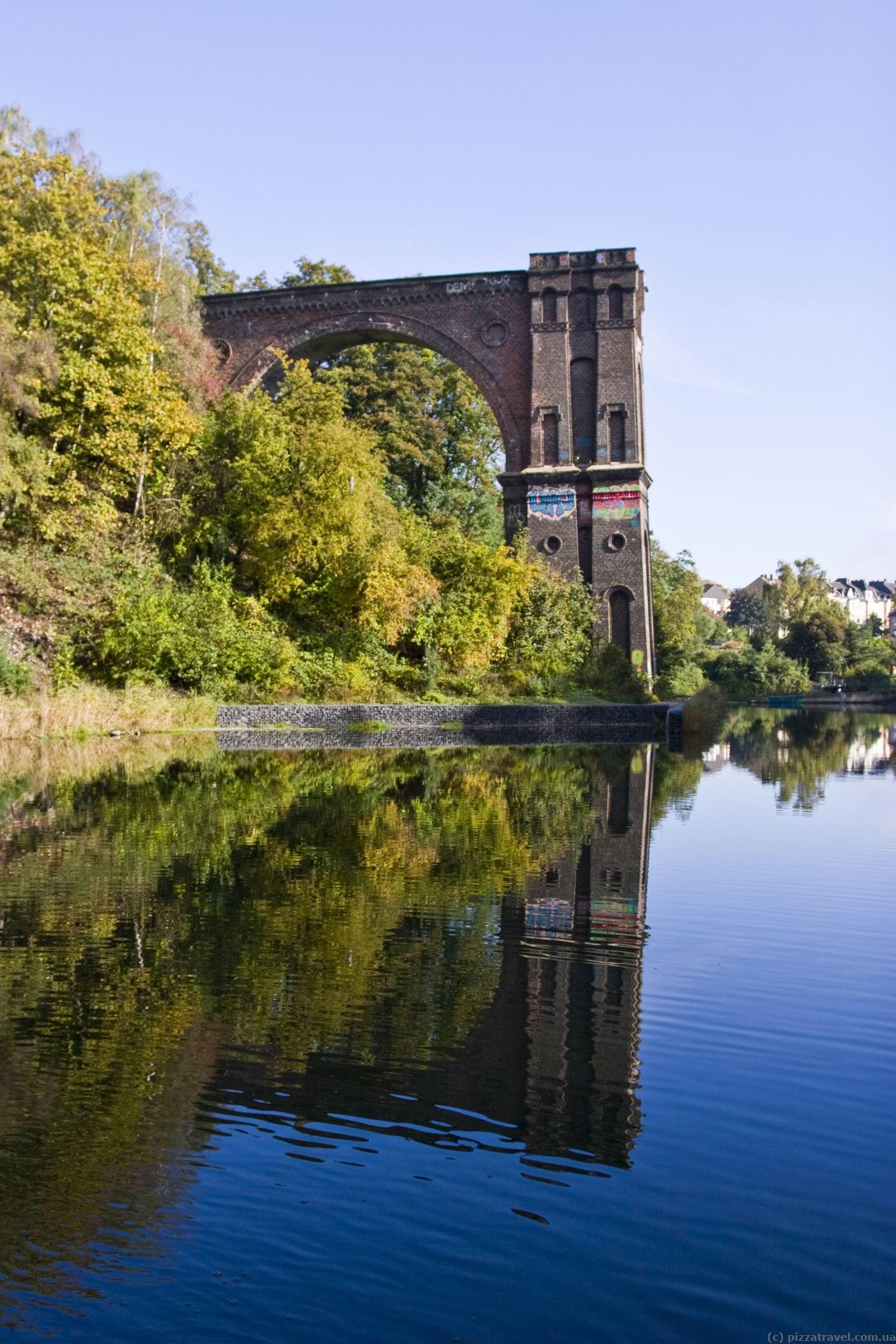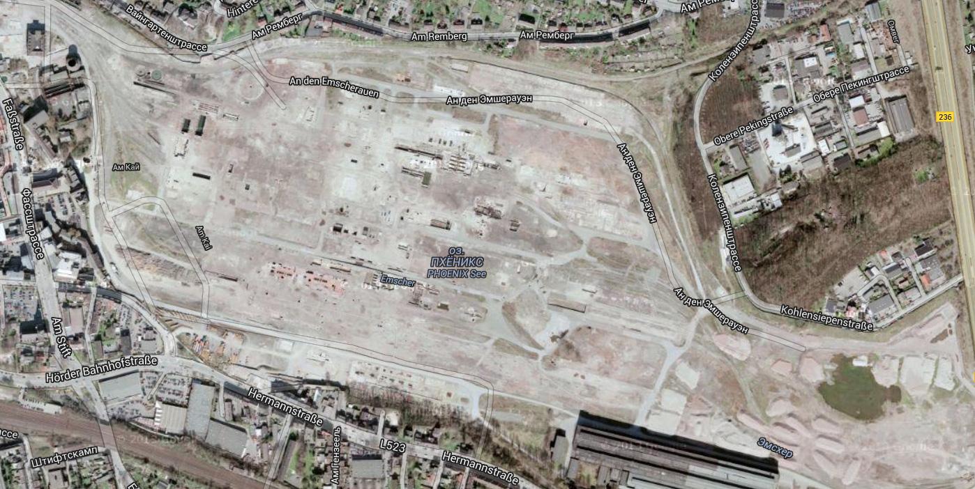 Після відвідання парку Вестфален ми вийшли через дальній вихід Hörde й пішли вздовж річки до озера Фенікс. Біля зруйнованого моста-віадука є сенс повернути праворуч і подивитись індустріальні пейзажі, що розташовані на місці заводів Phoenix West.