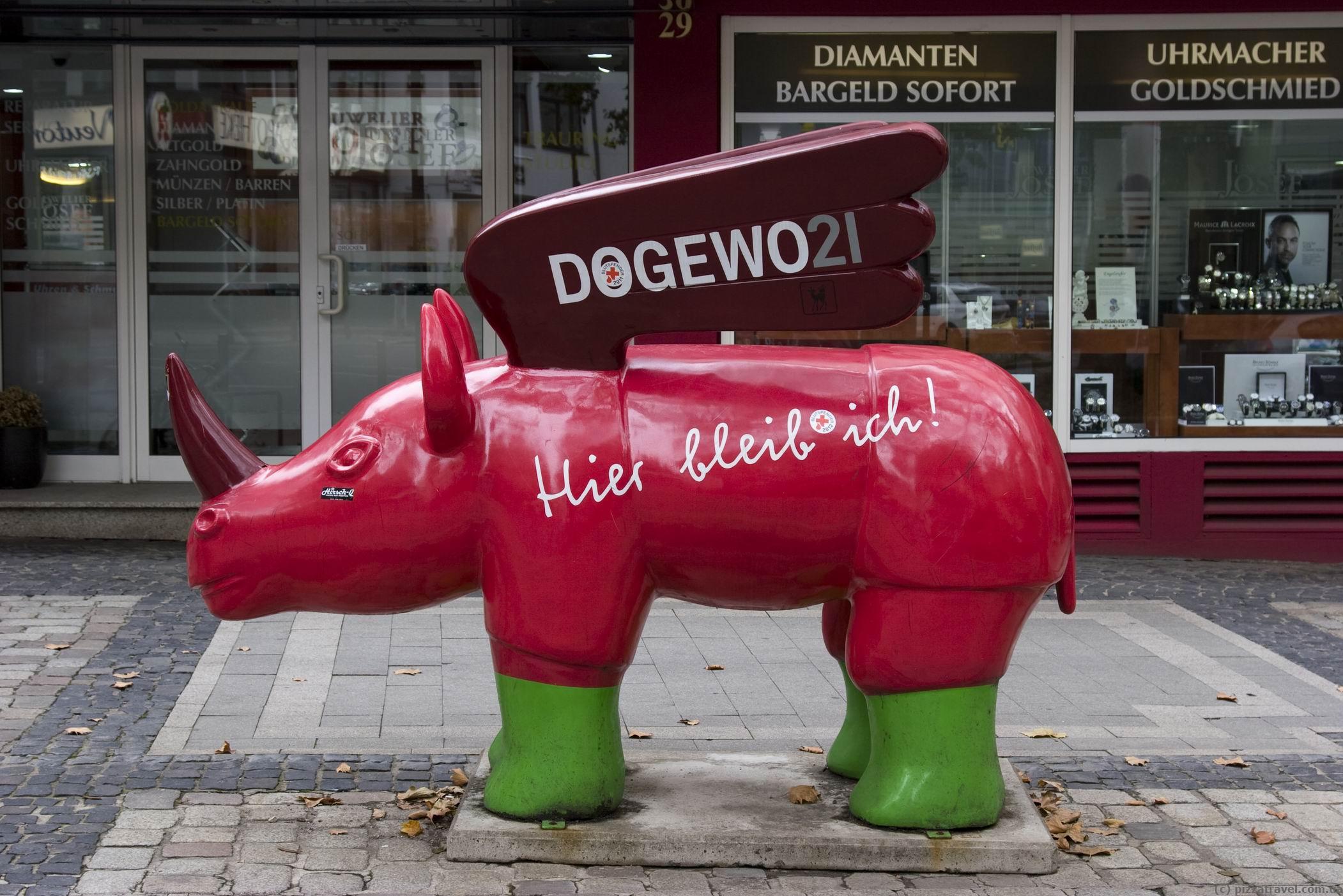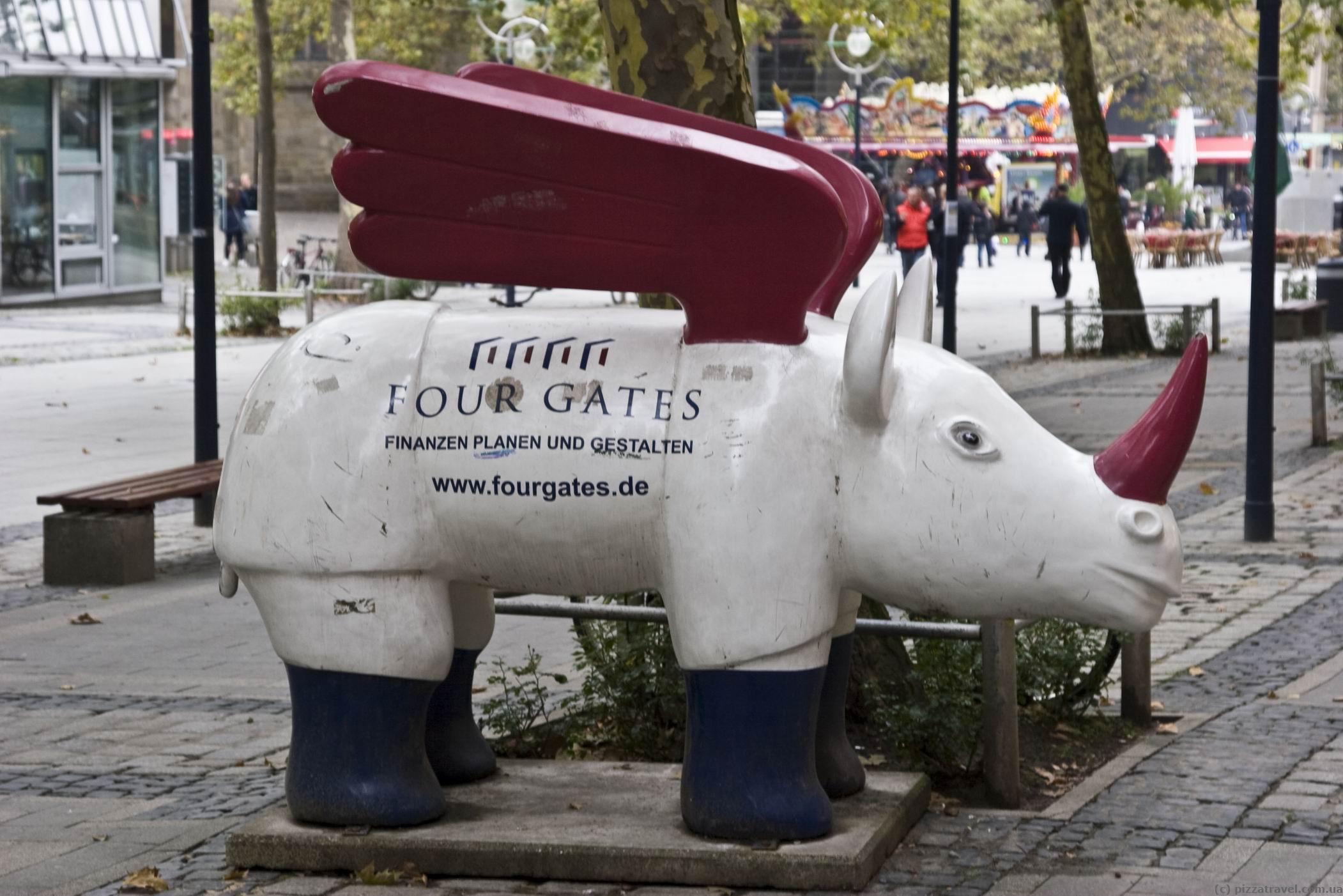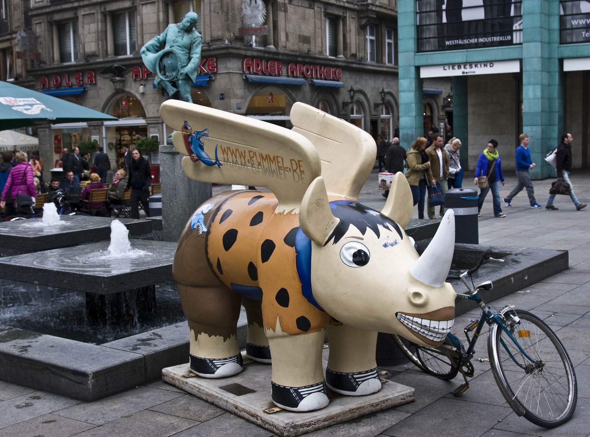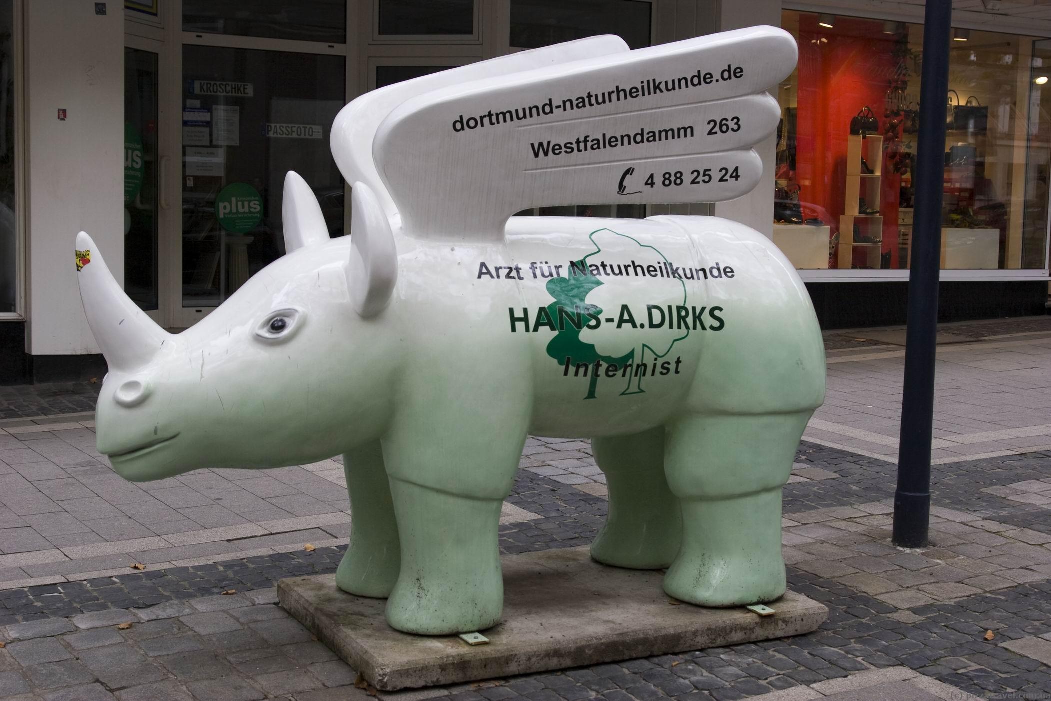 У 2005 році перед чемпіонатом світу з футболу Дортмунд вирішив якось виділитися серед інших міст і нахабним чином скопіював берлінську ідею з ведмедиками Бадді. По всьому місту були розставлені розфарбовані носороги з крилами! Спонсор або простий житель за 3000 євро міг встановити свого носорога, всього їх більше 100. У носорога ідеальний слух, тому він є символом філармонії Дортмунда. А крила додали, бо носоріг повинен спонукати нас до підкорення нових інтелектуальних висот :)
