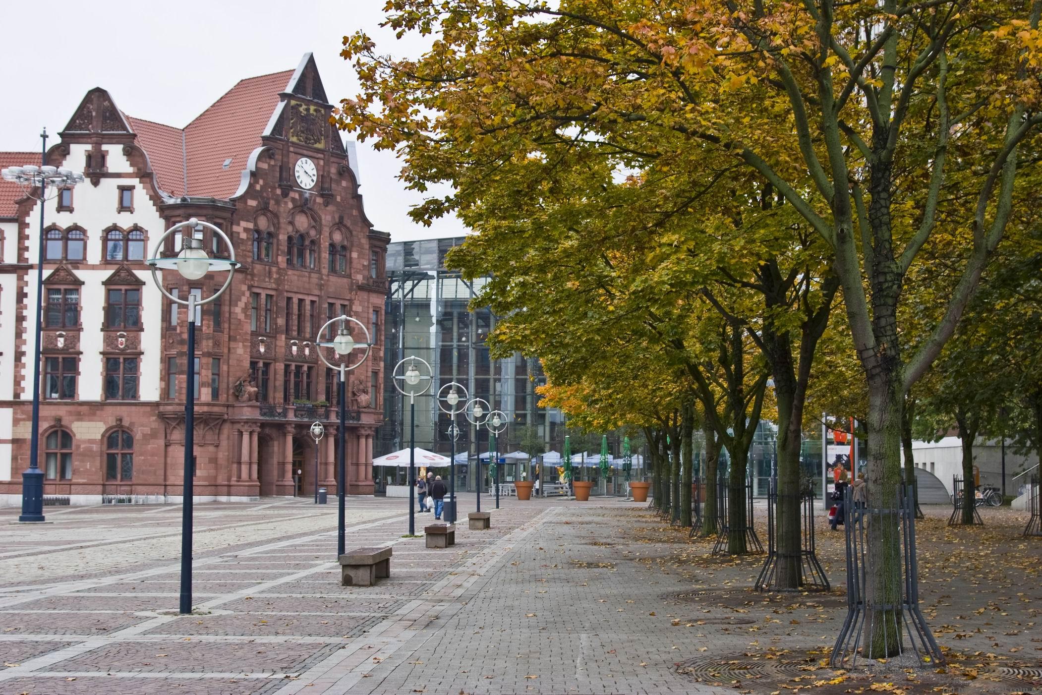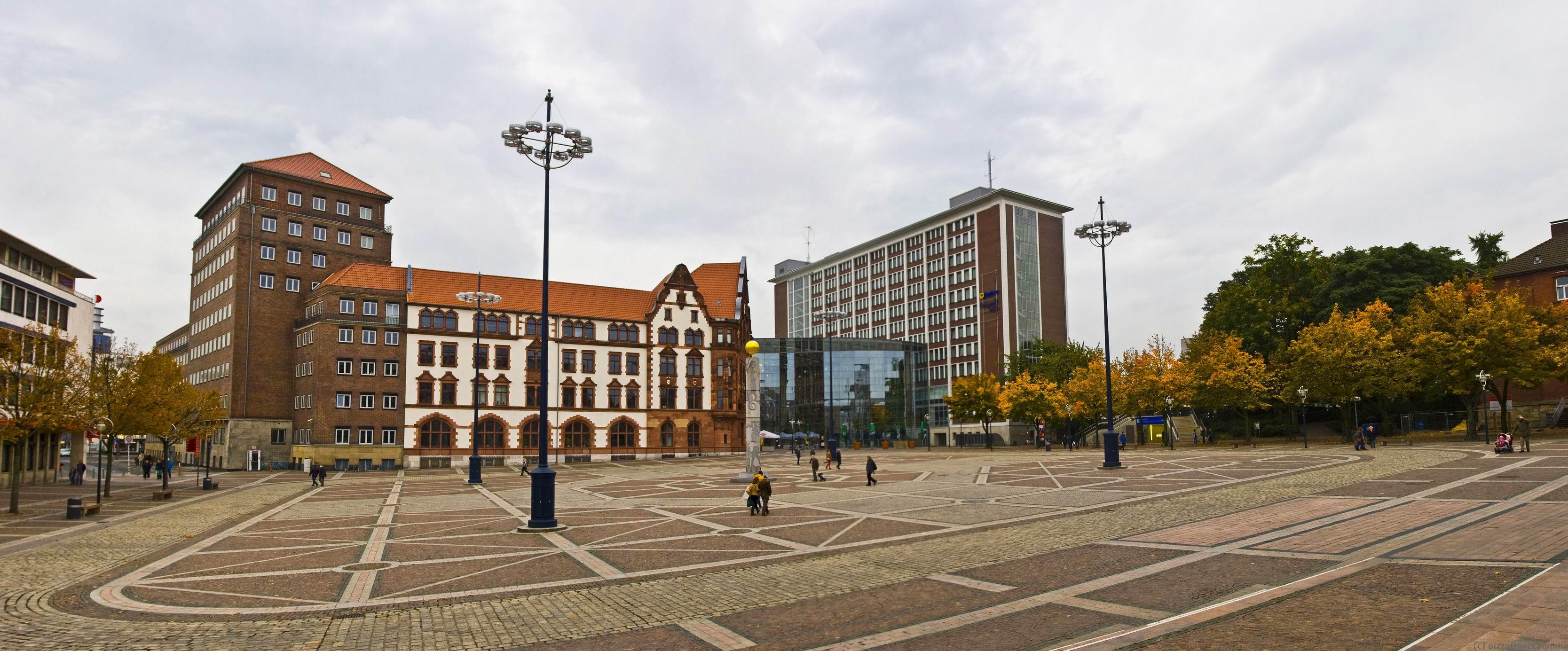 Набагато красивіша Площа Миру, на якій розташовані дві ратуші - Нова та Стара. Причому використовуються обидві й нова з'єднана зі старою красивою скляною галереєю Berswordt-Halle. Оригінальна будівля була побудована в 1899 році, але сильно постраждала під час війни й була відновлена у спрощеному вигляді.
