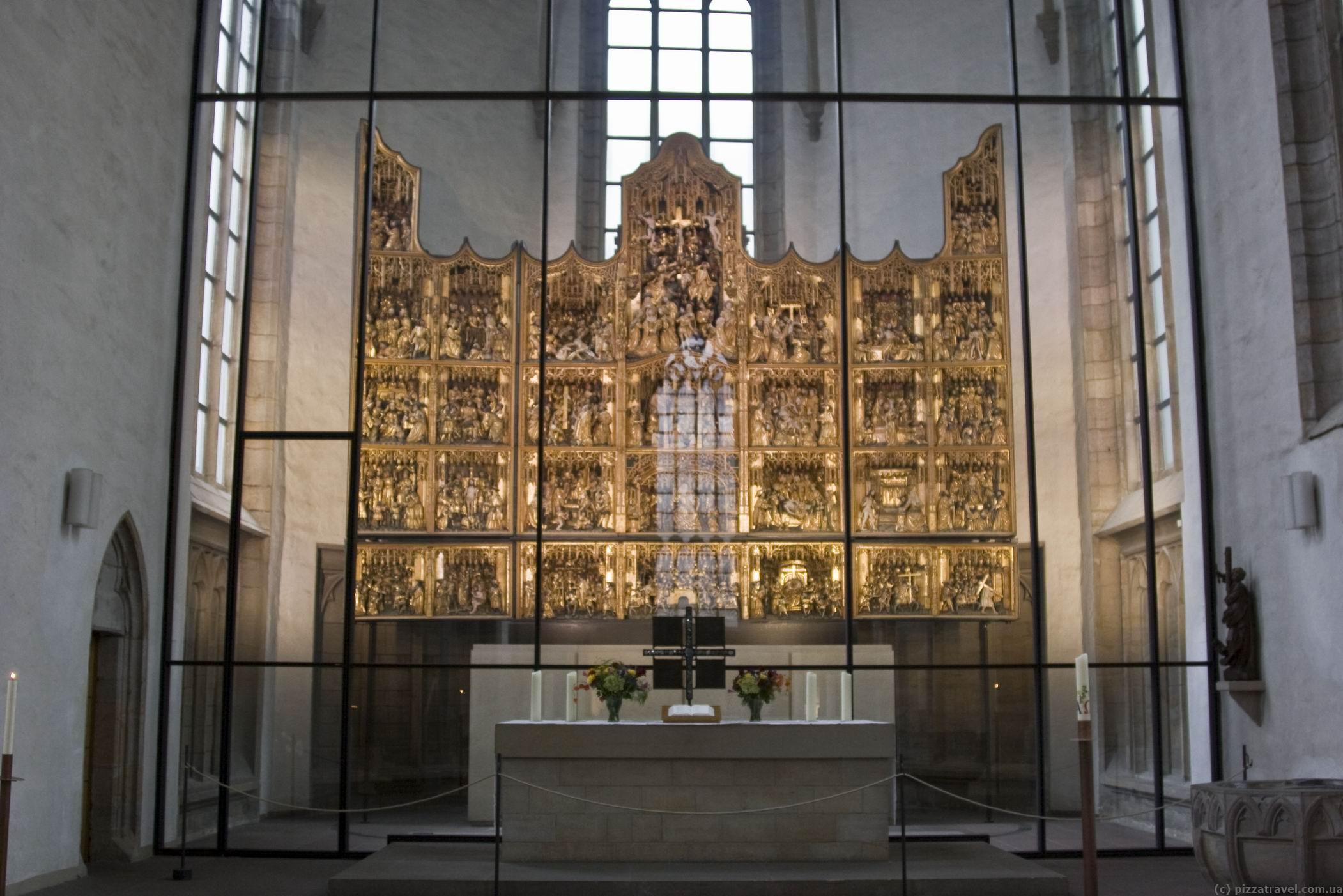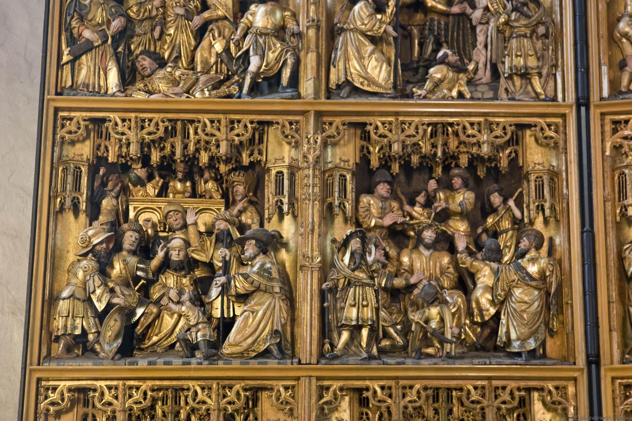 З усіх церков ми зайшли в Петрікірхе (Petrikirche, XIV ст.), оскільки в ній знаходиться "Золоте диво Вестфалії" - різьблений вівтар з Антверпена 1521 року з 633 позолоченими фігурами.