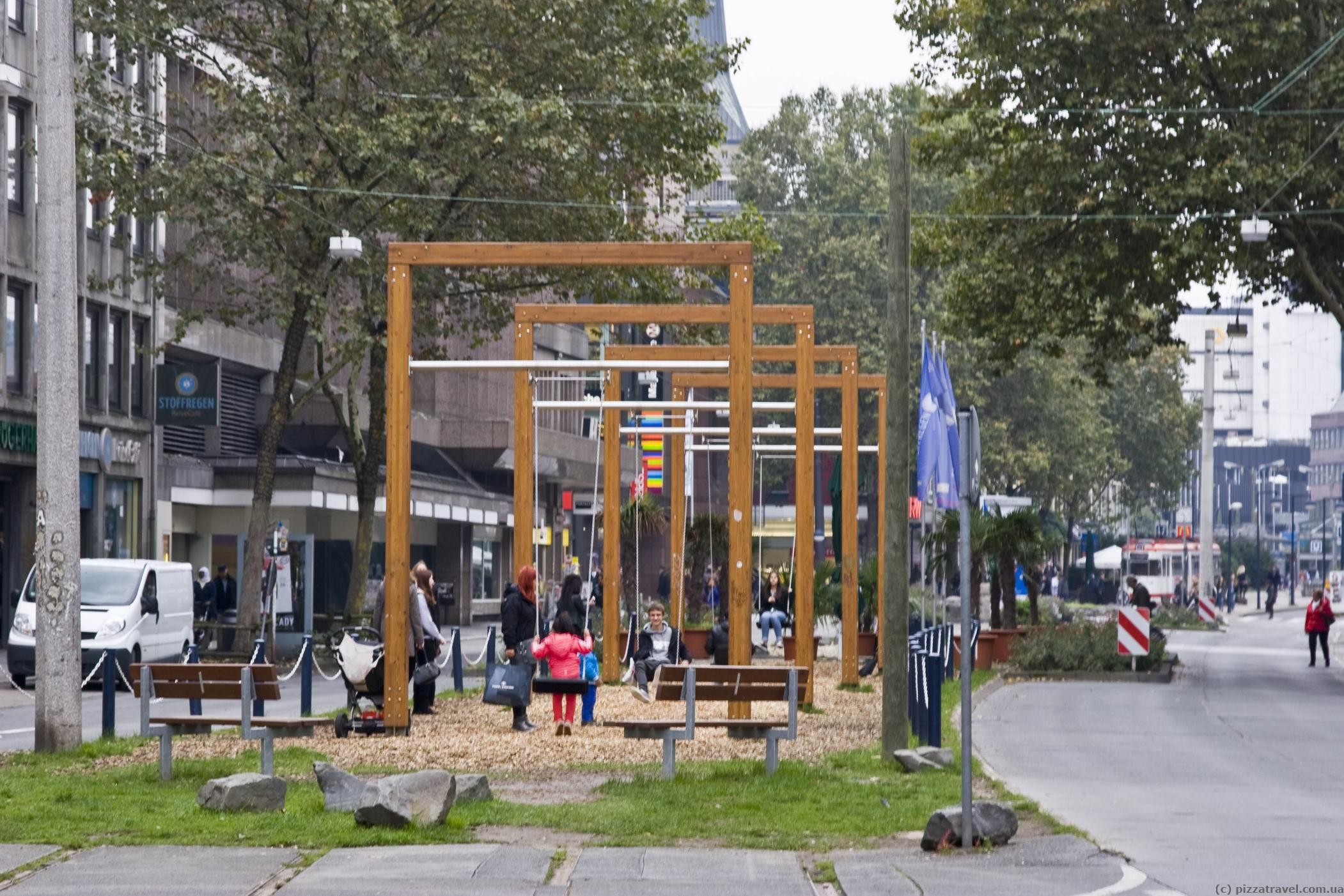Діти грають прямо в центрі міста й катаються на найбільшій гойдалці з усіх, що я бачив.