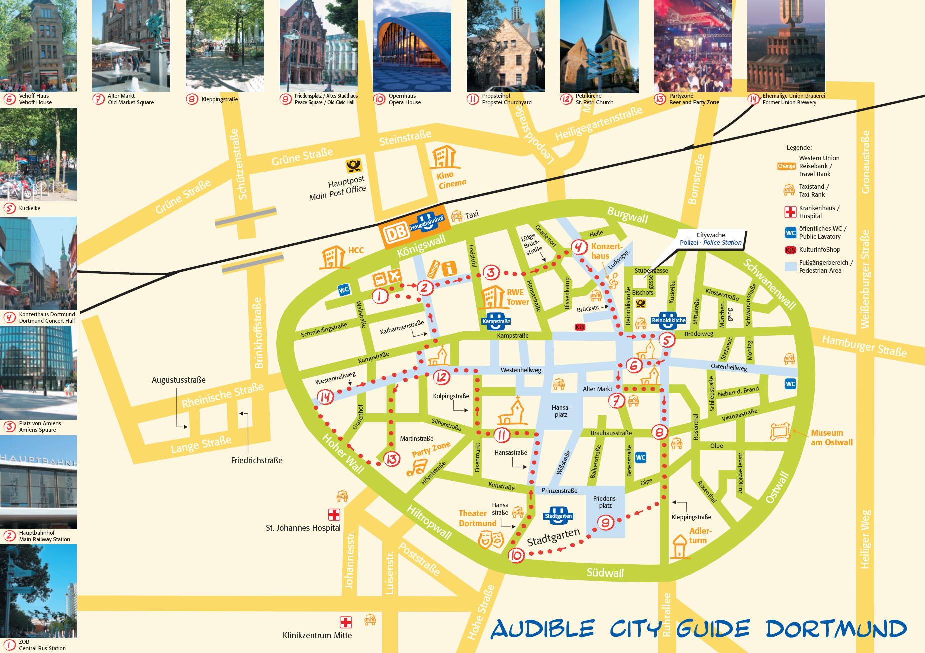 Старовинних будівель зовсім небагато, оскільки Дортмунд був практично повністю зруйнований під час війни. Тому є сенс звертати увагу на різні цікаві речі. Наприклад, раніше по місту ходив трамвай. Зараз його сховали під землю, але цікаво, що старі колії залишилися на тому ж місці. Та й зупинка метротрама виглядає вельми цікаво.
