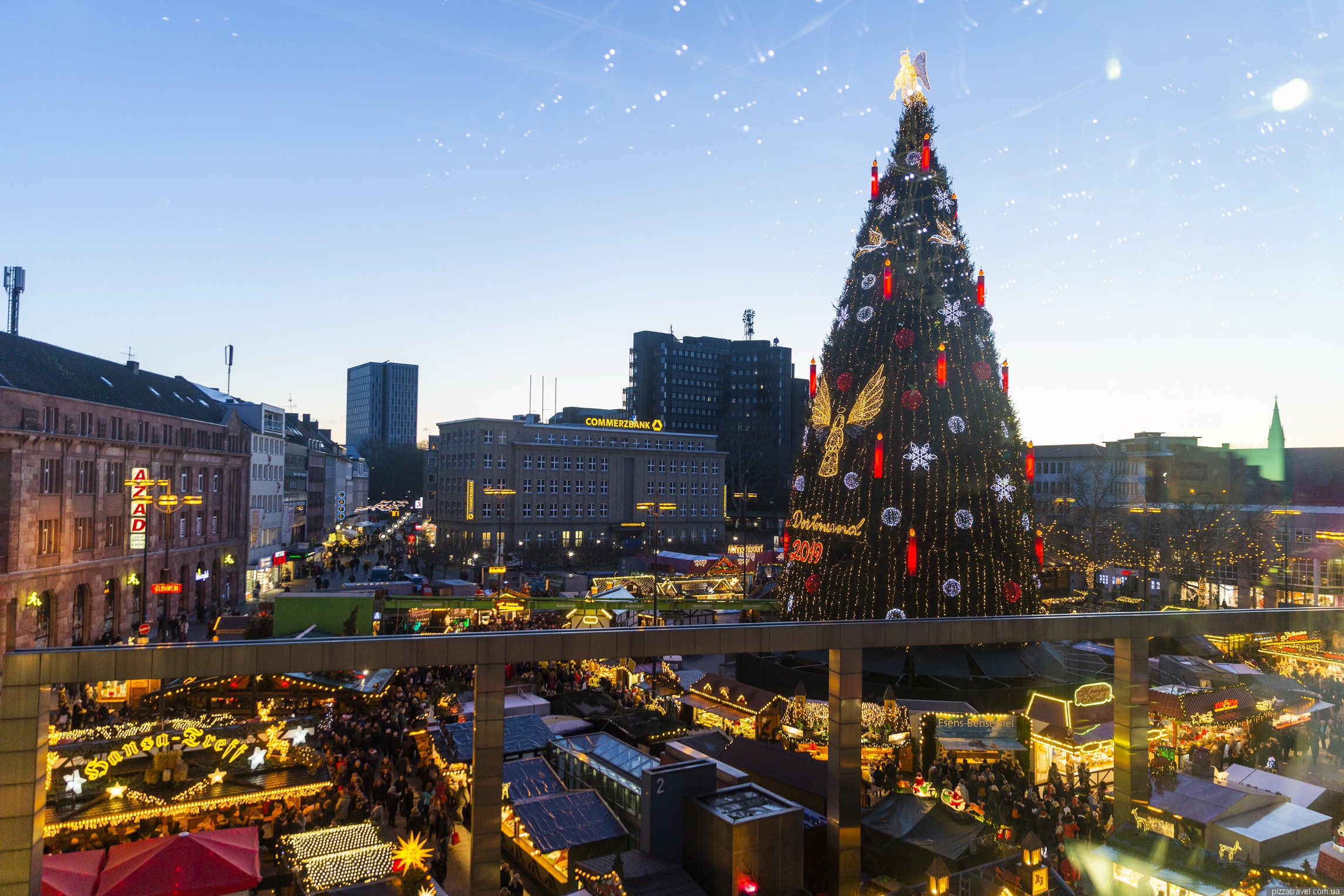 У 2019 ми заїхали в Дортмунд подивитися Різдвяний ярмарок та найвищу в Німеччині ялинку. Вид на площу згори відкривається з торгового центру GALERIA Karstadt Kaufhof.