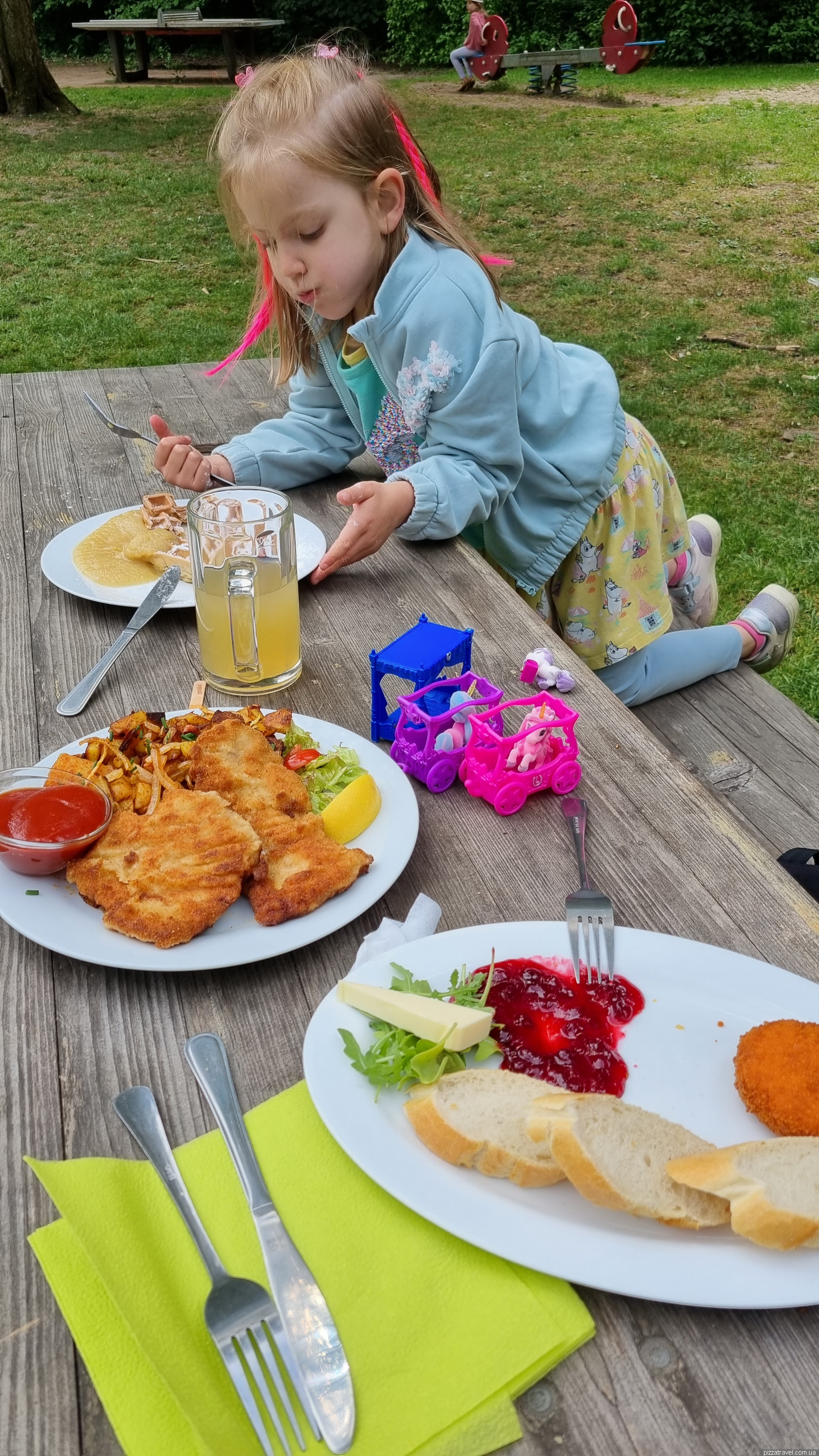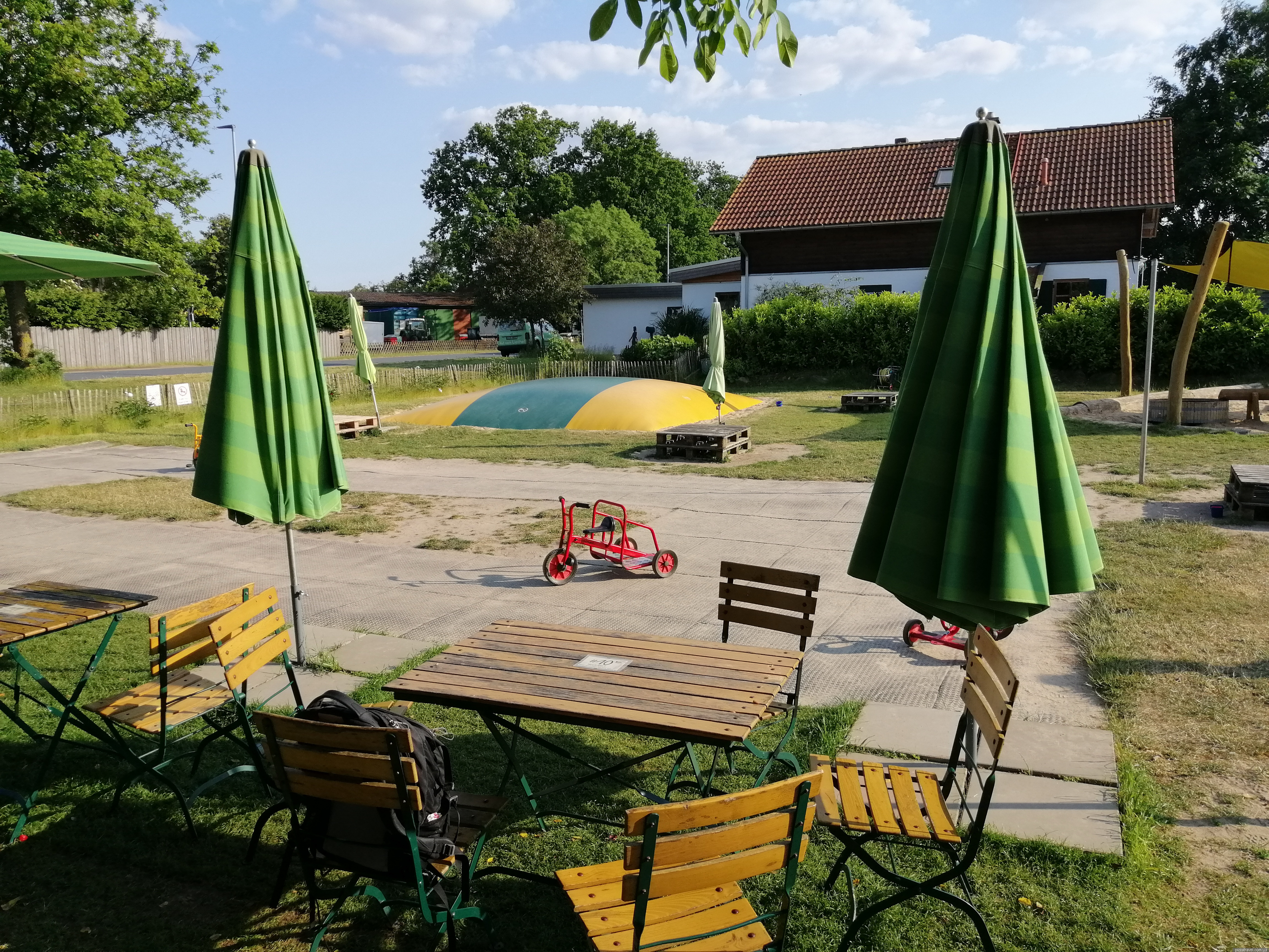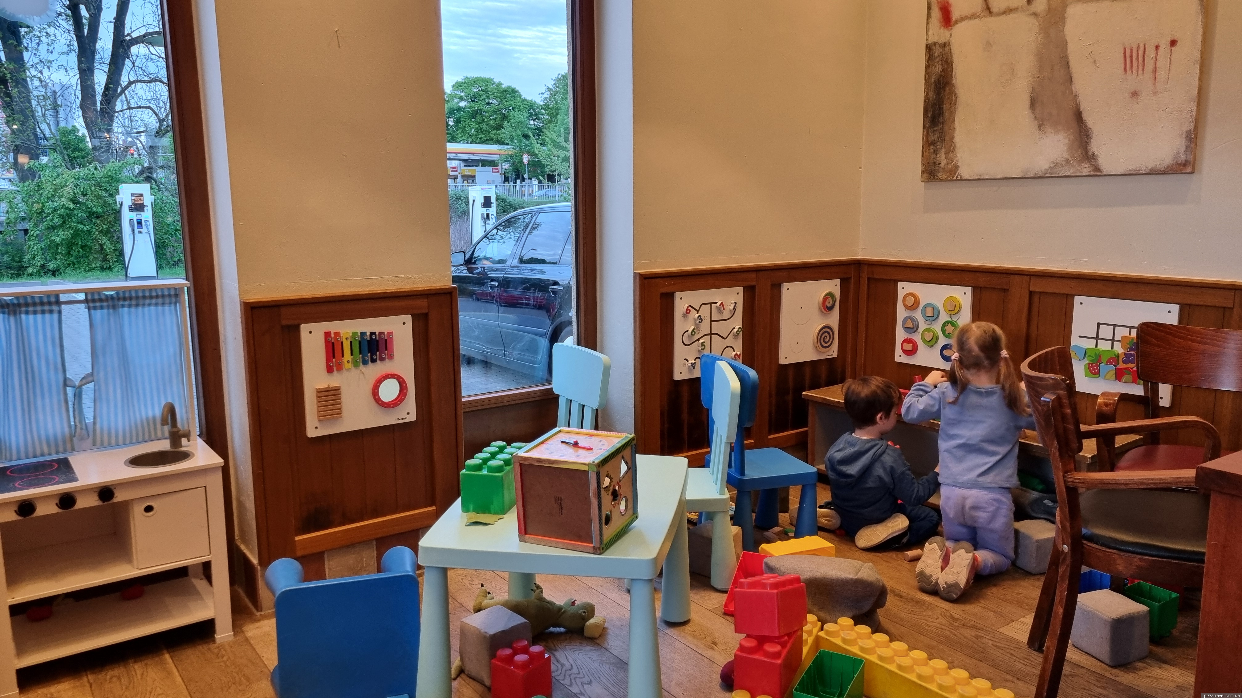 Є пісочниця з іграшками біля столиків і невеликий дитячий майданчик, але його не видно від столиків. Туди можна сходити, поки чекаєте на їжу. Там же є козлики і можливо інші домашні тварини. Є невелика парковка на території 52.574583, 9.719111. Багато хто паркується вздовж дороги, проте наші знайомі отримали штраф за таке паркування, краще так не робити.
