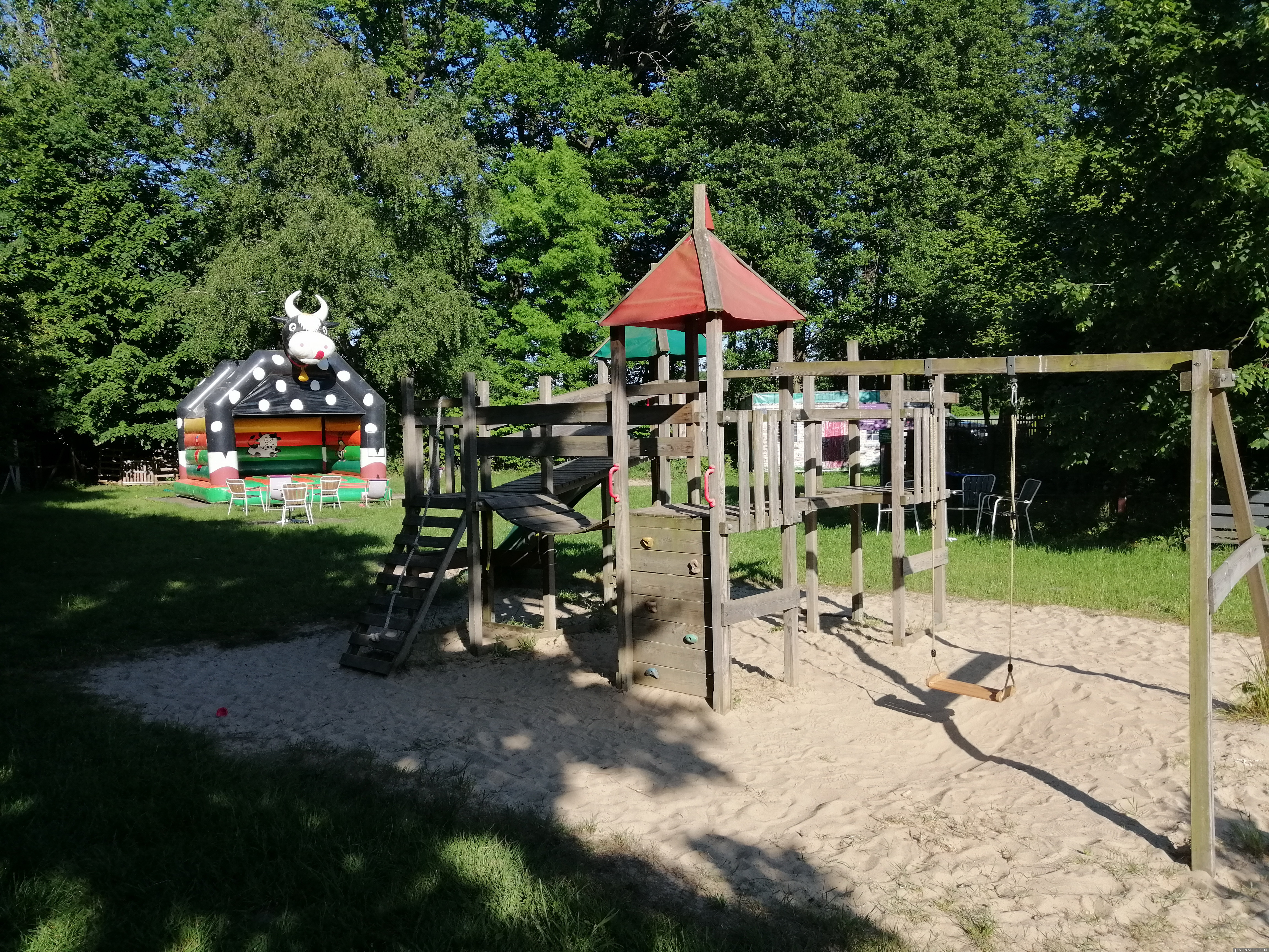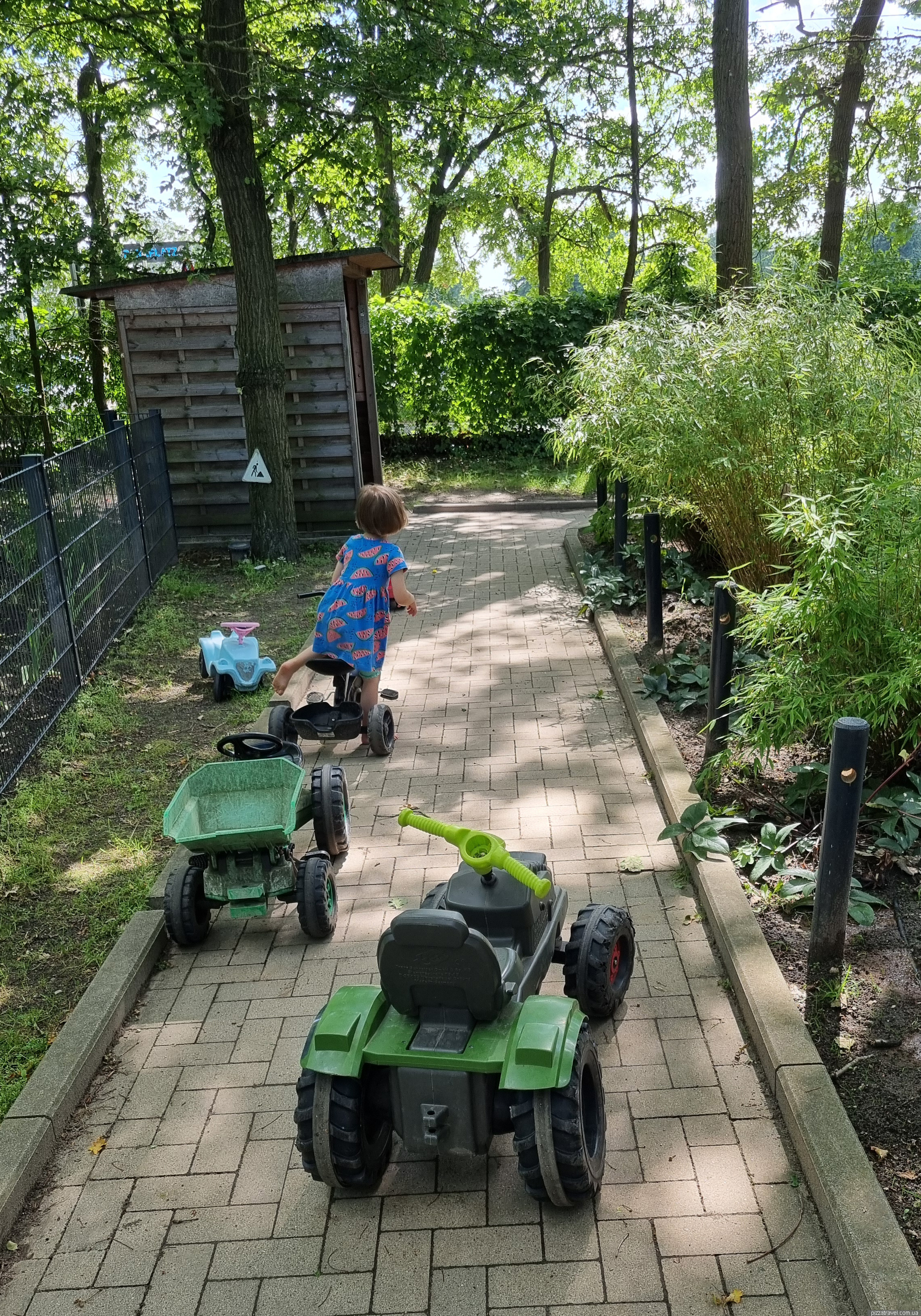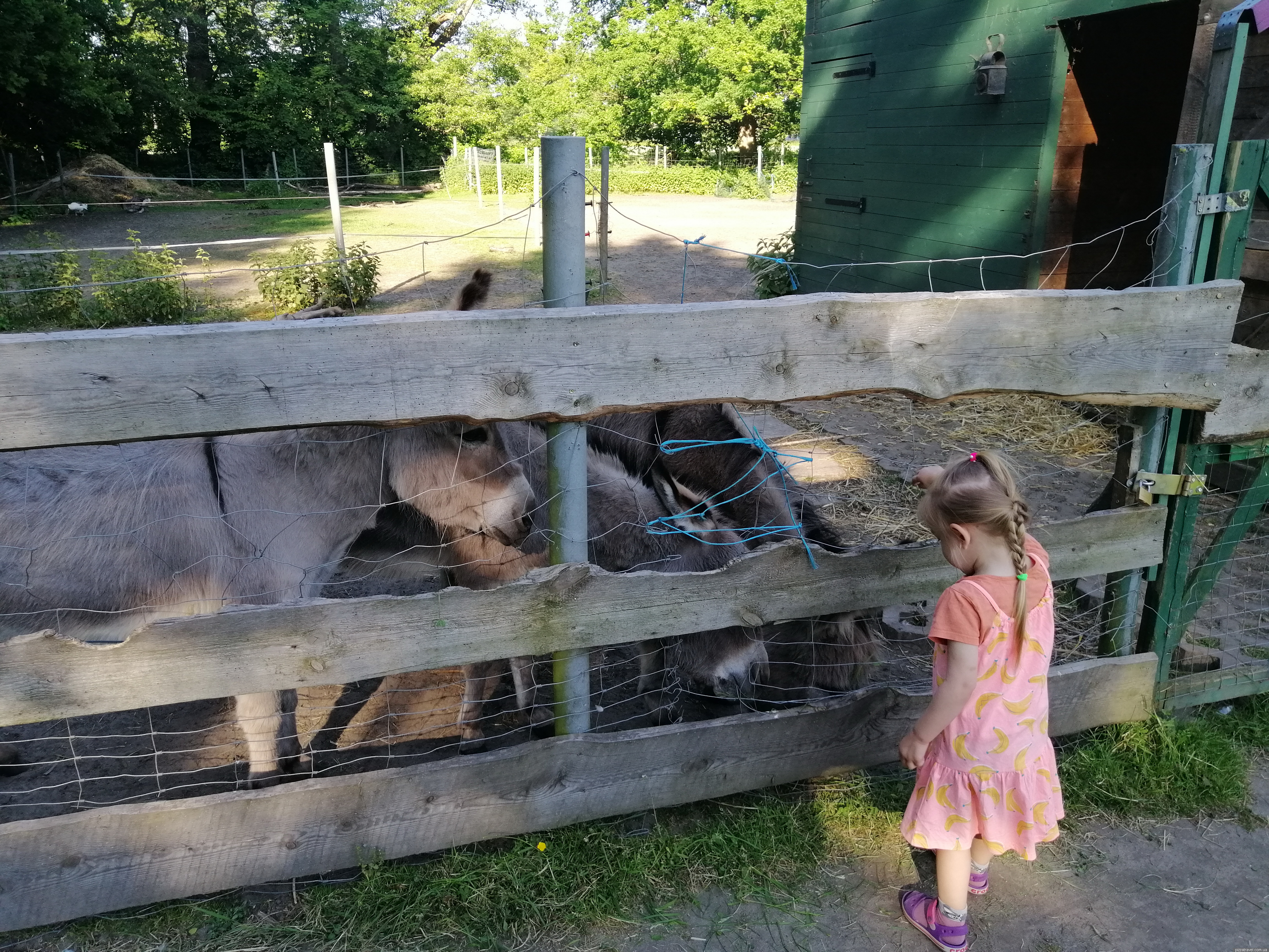 Є пісочниця з іграшками біля столиків і невеликий дитячий майданчик, але його не видно від столиків. Туди можна сходити, поки чекаєте на їжу. Там же є козлики і можливо інші домашні тварини. Є невелика парковка на території 52.574583, 9.719111. Багато хто паркується вздовж дороги, проте наші знайомі отримали штраф за таке паркування, краще так не робити.