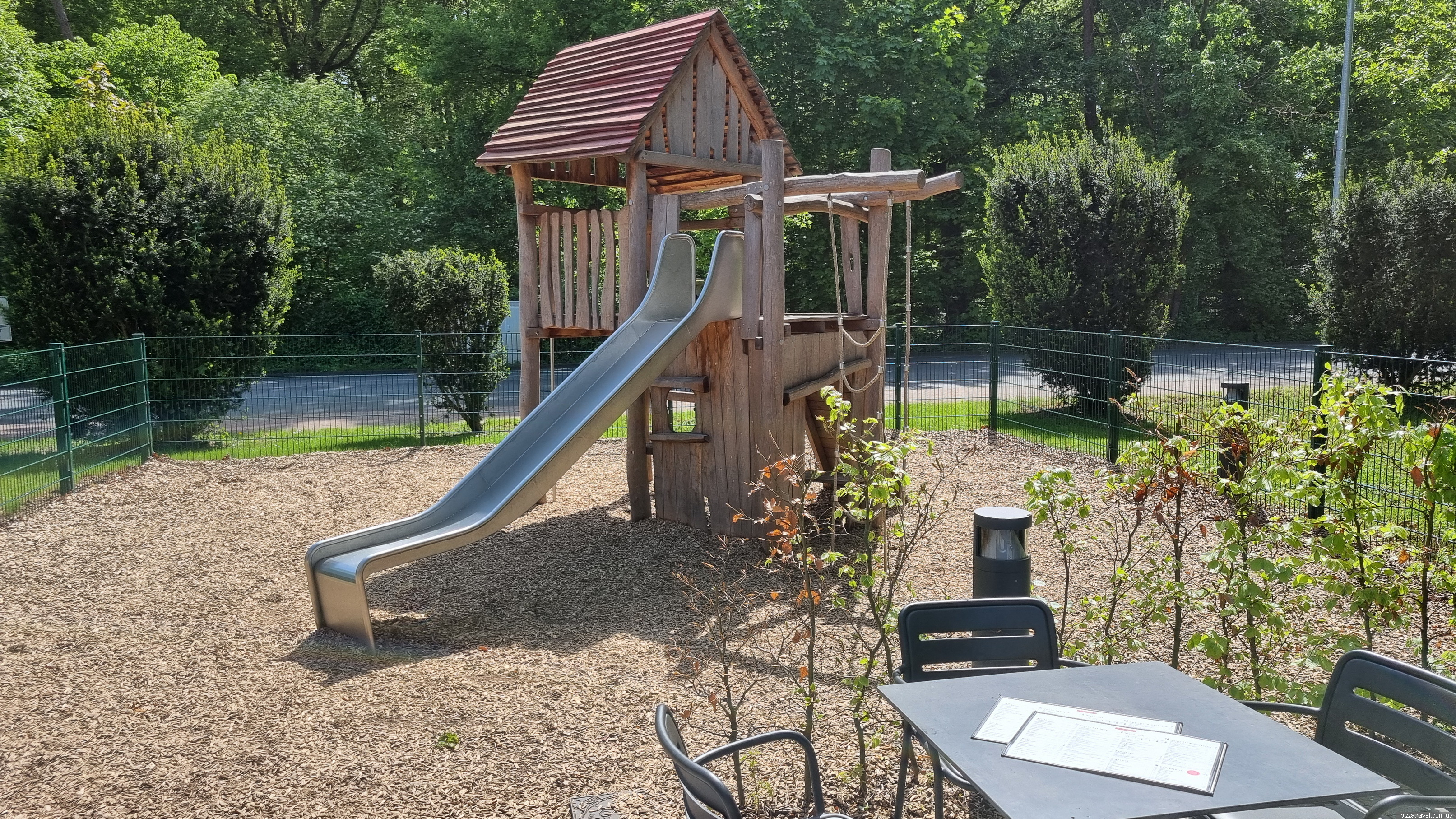 Ресторан у красивому місці, історичному селі біля Вольфсбурга, є дитячий майданчик.