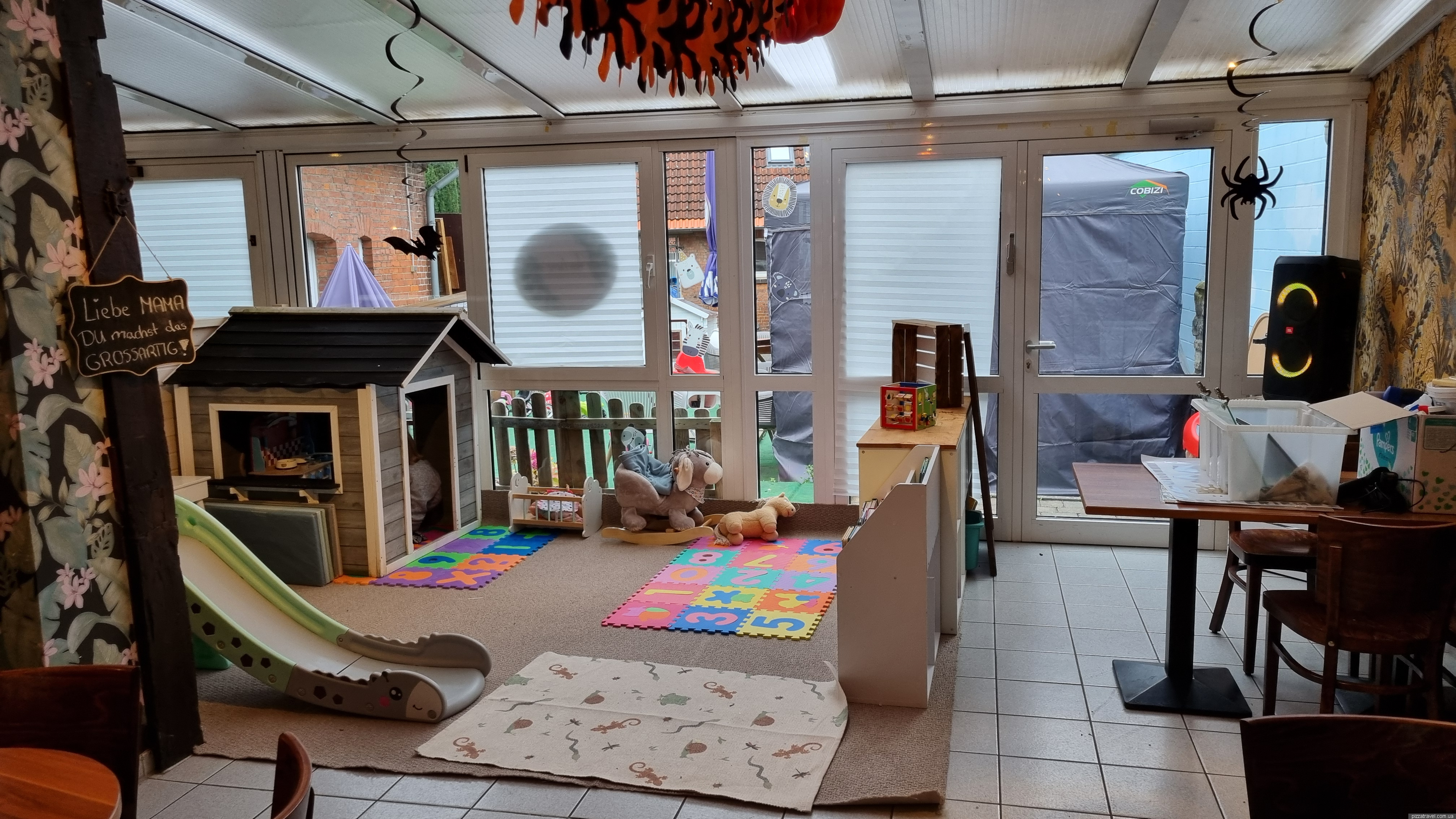 Є дитячий куточок та дитячий майданчик на вулиці, який працює у теплу пору року. Спокійна, душевна атмосфера. У парку поруч є ще дитячий майданчик (52.265806, 9.761000), куди можна прогулятися.