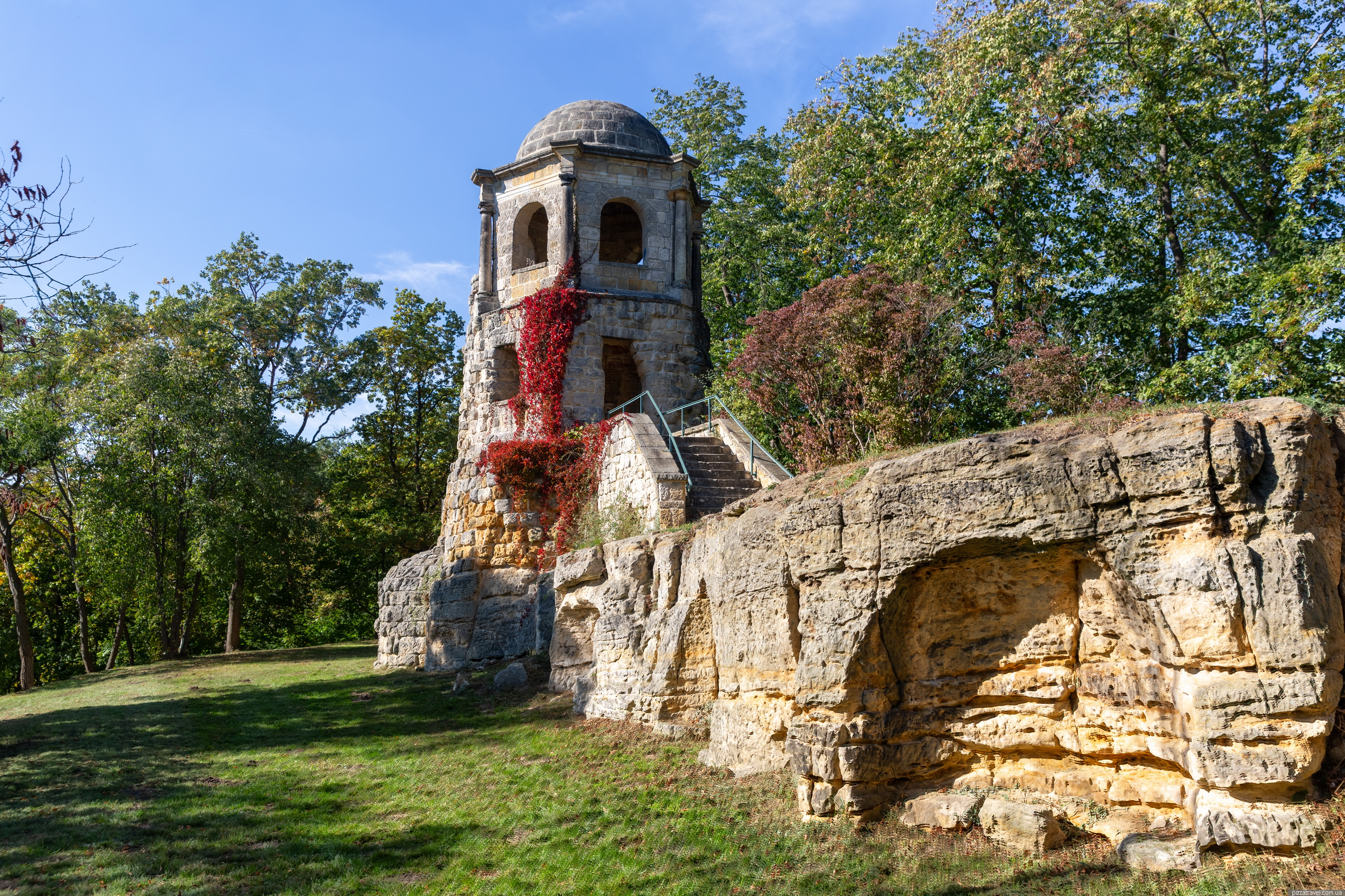 Поруч із Хальберштадтом є невеликий, але дуже приємний для прогулянок пагорбовий масив - район Spiegelsberge (парковка 51.874028, 11.046750). Це не висока “гора” у класичному сенсі, а швидше лісиста височина, де зібрано одразу кілька цікавих місць.