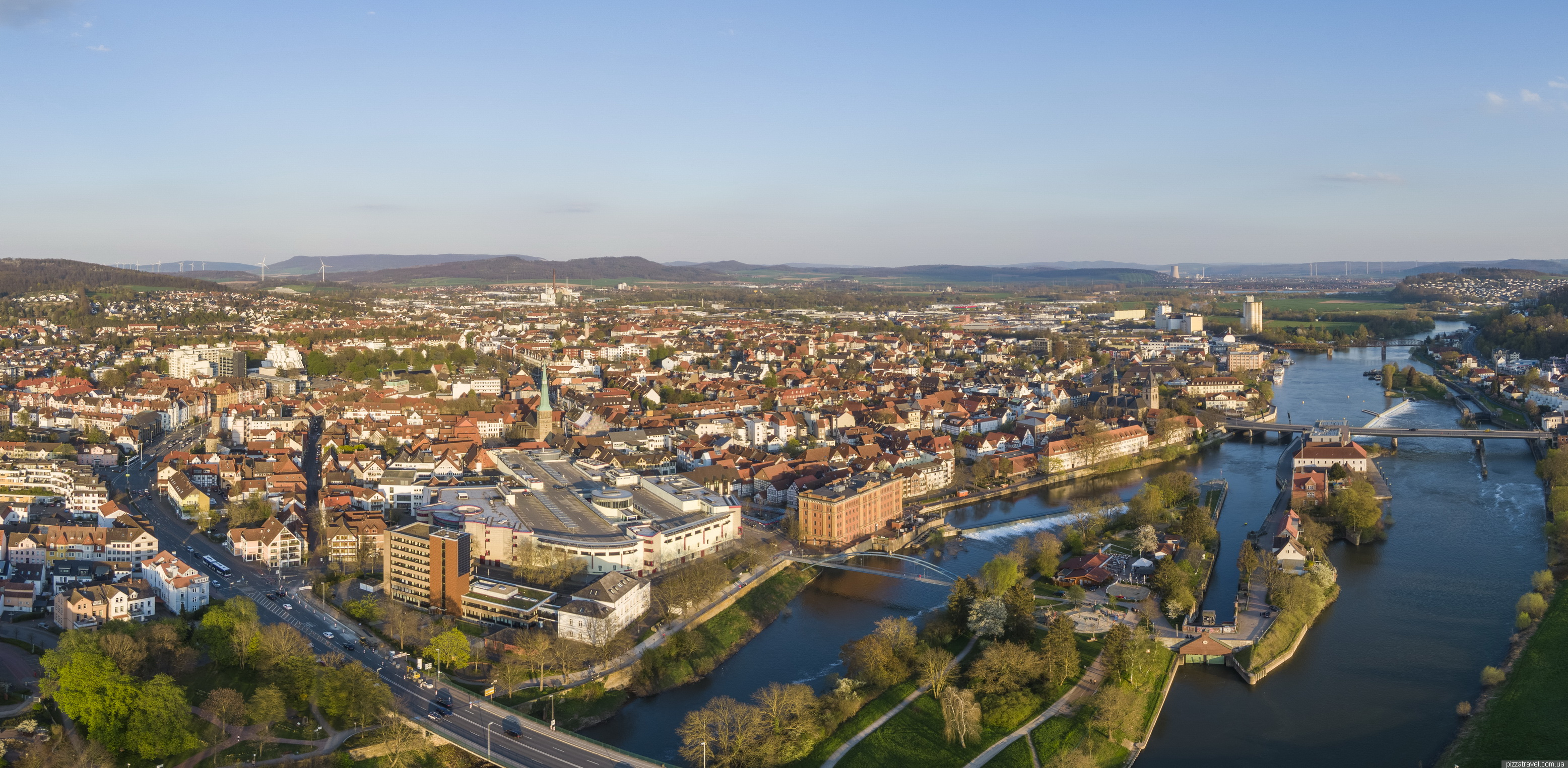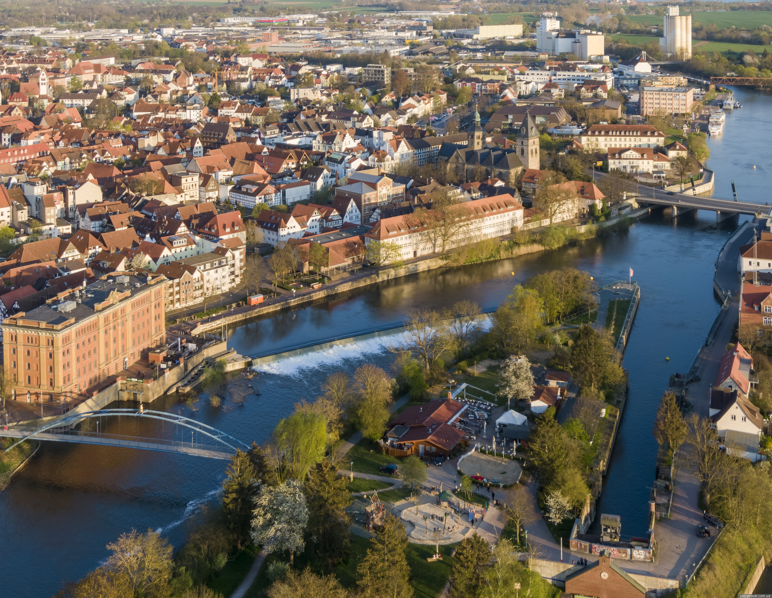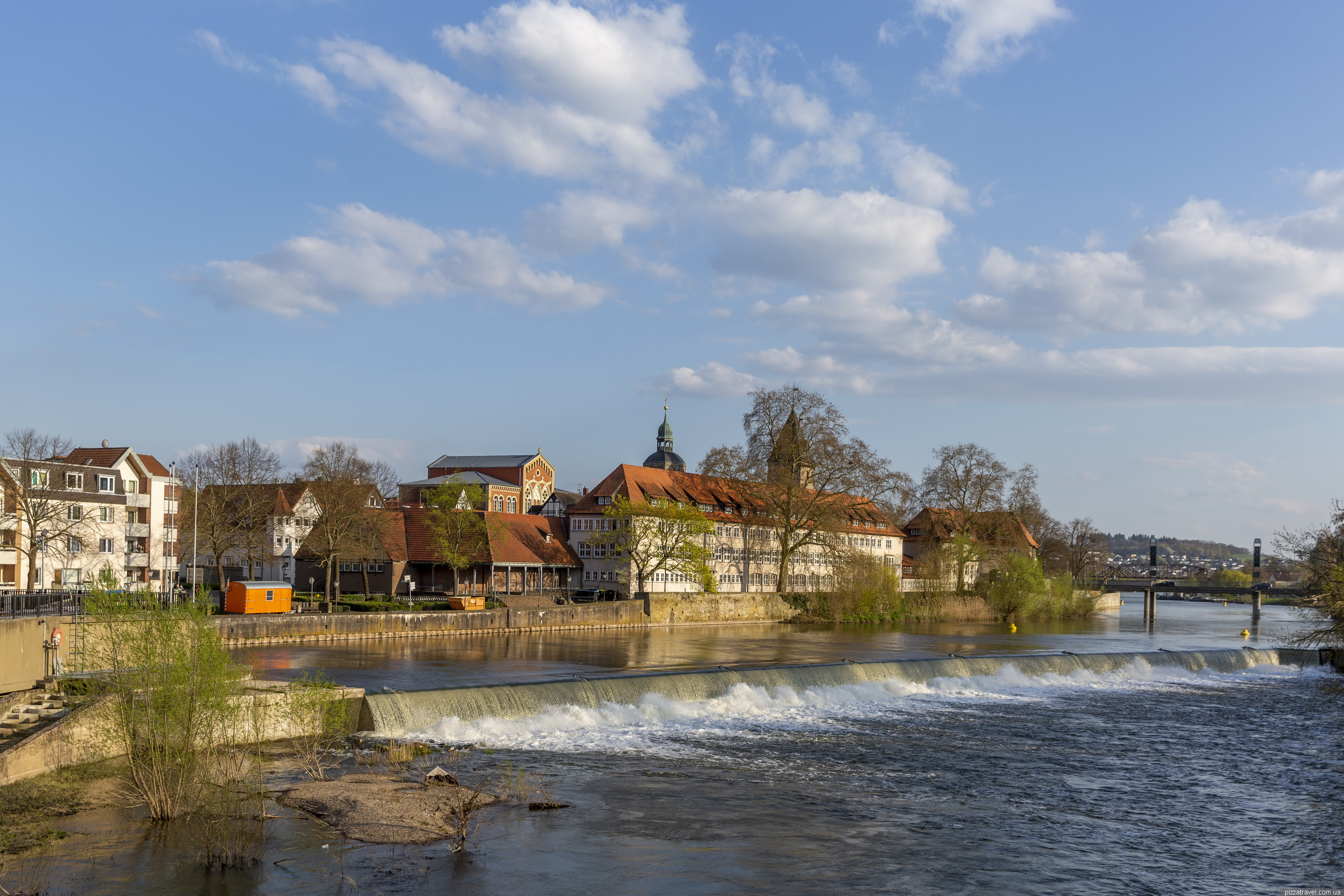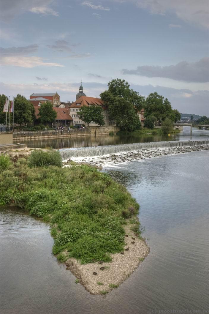Місто стоїть на річці Везер, є гарний острів-парк, на який можна потрапити мостом із золотим мишеням. На острові є гарний дитячий майданчик та ресторан.
