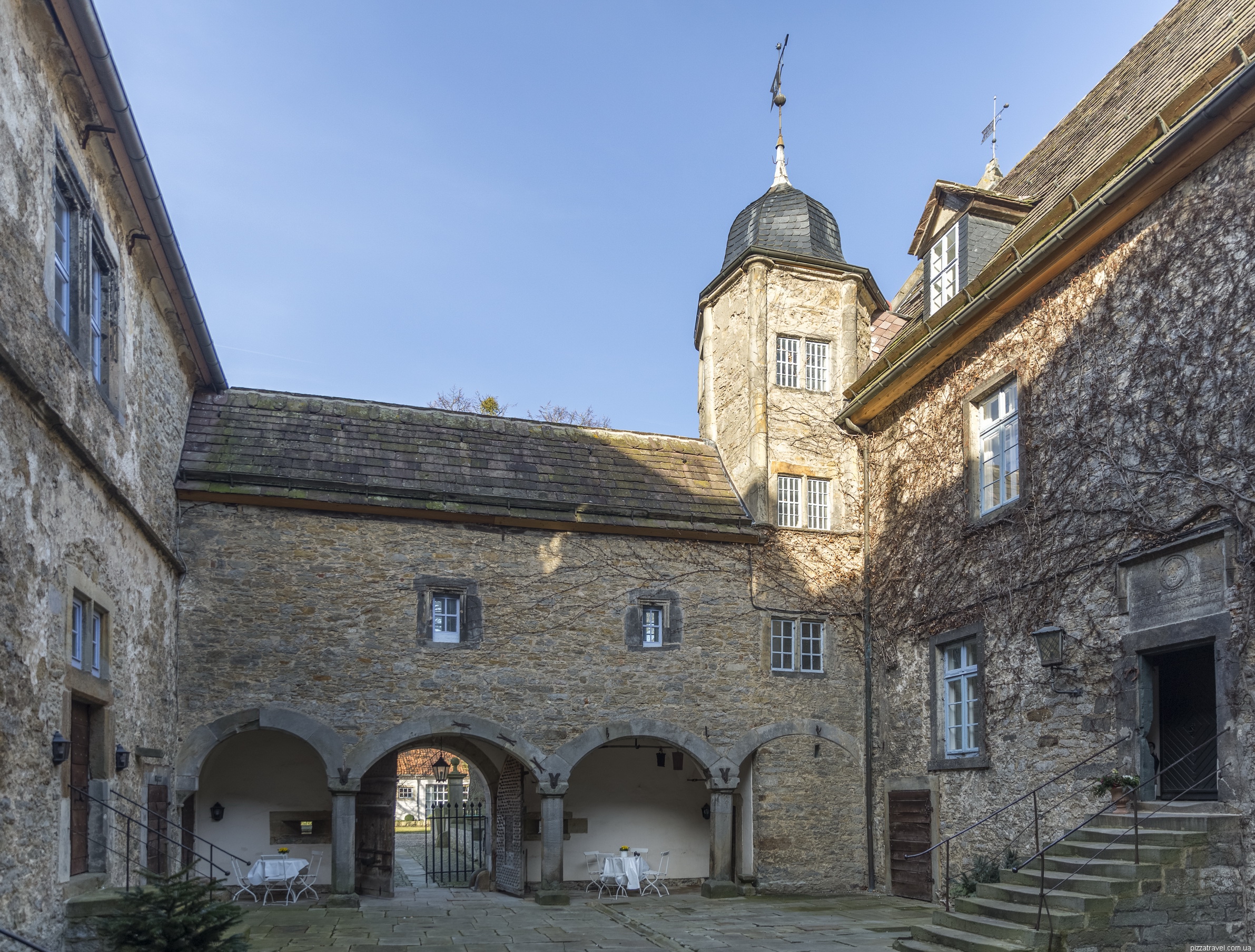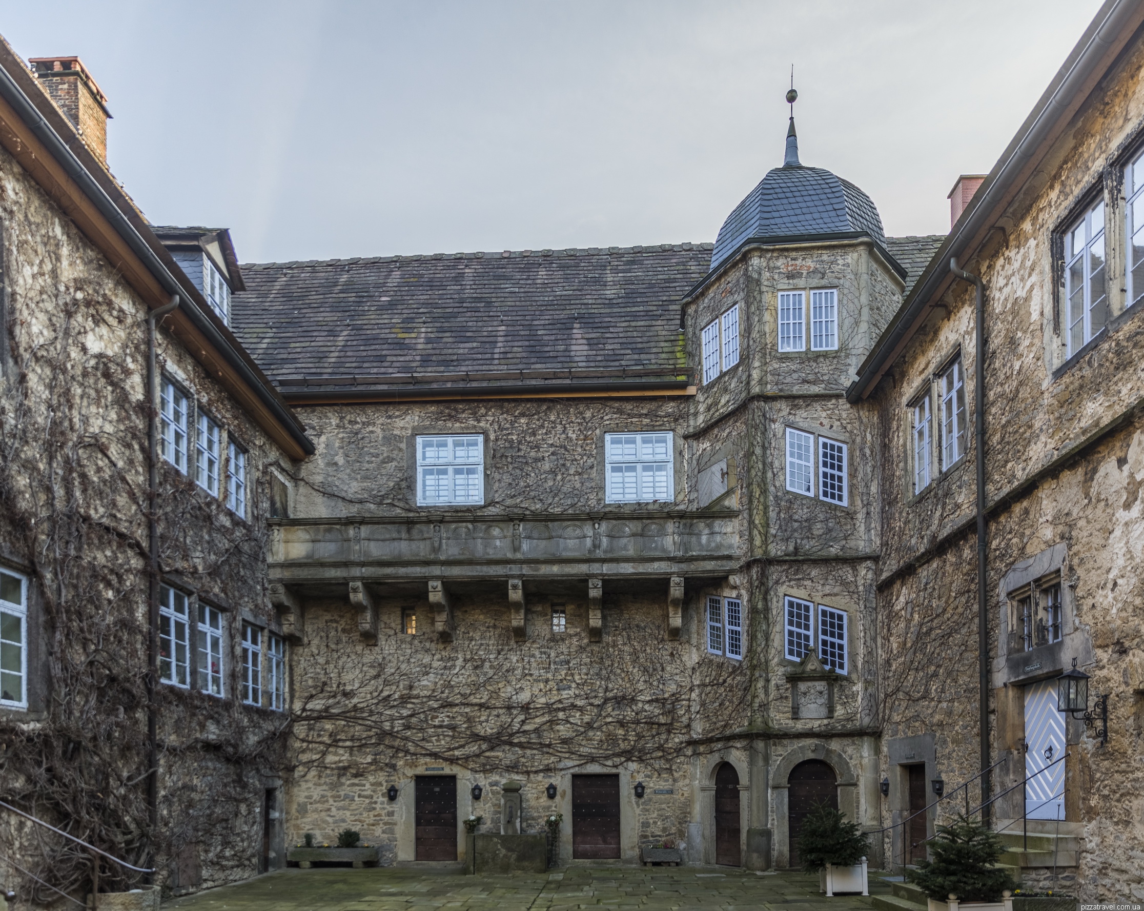Перша будова на цьому місці вперше згадується в 1310 році. У 16 столітті замок був укріплений, додалися рови з водою. У 1584 він перейшов в руки сім'ї Менгерсен (Von Mengersen), які провели реконструкцію в стилі везерського ренесансу. З боків були прибудовані фермерські будівлі, існуючі і зараз.