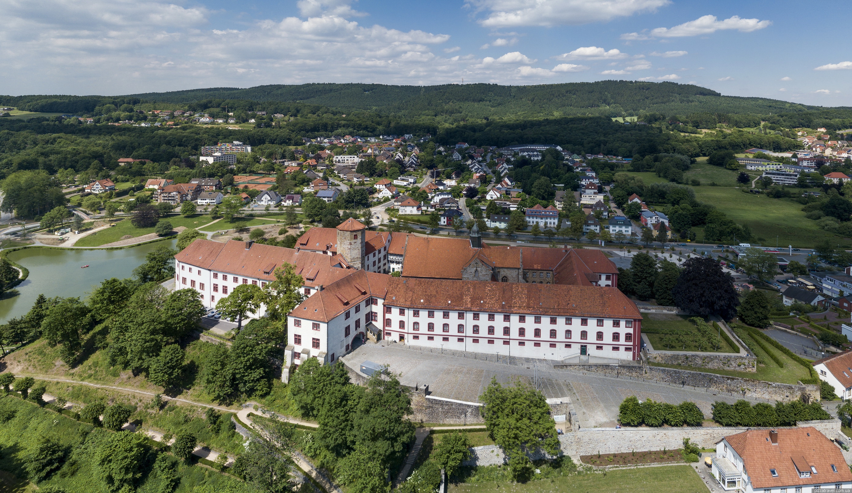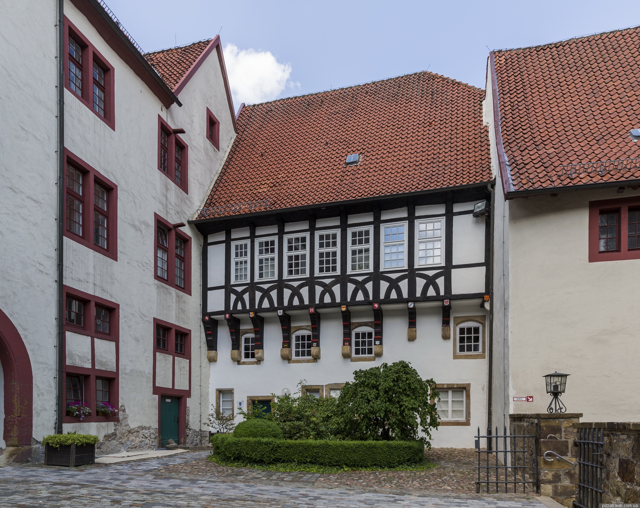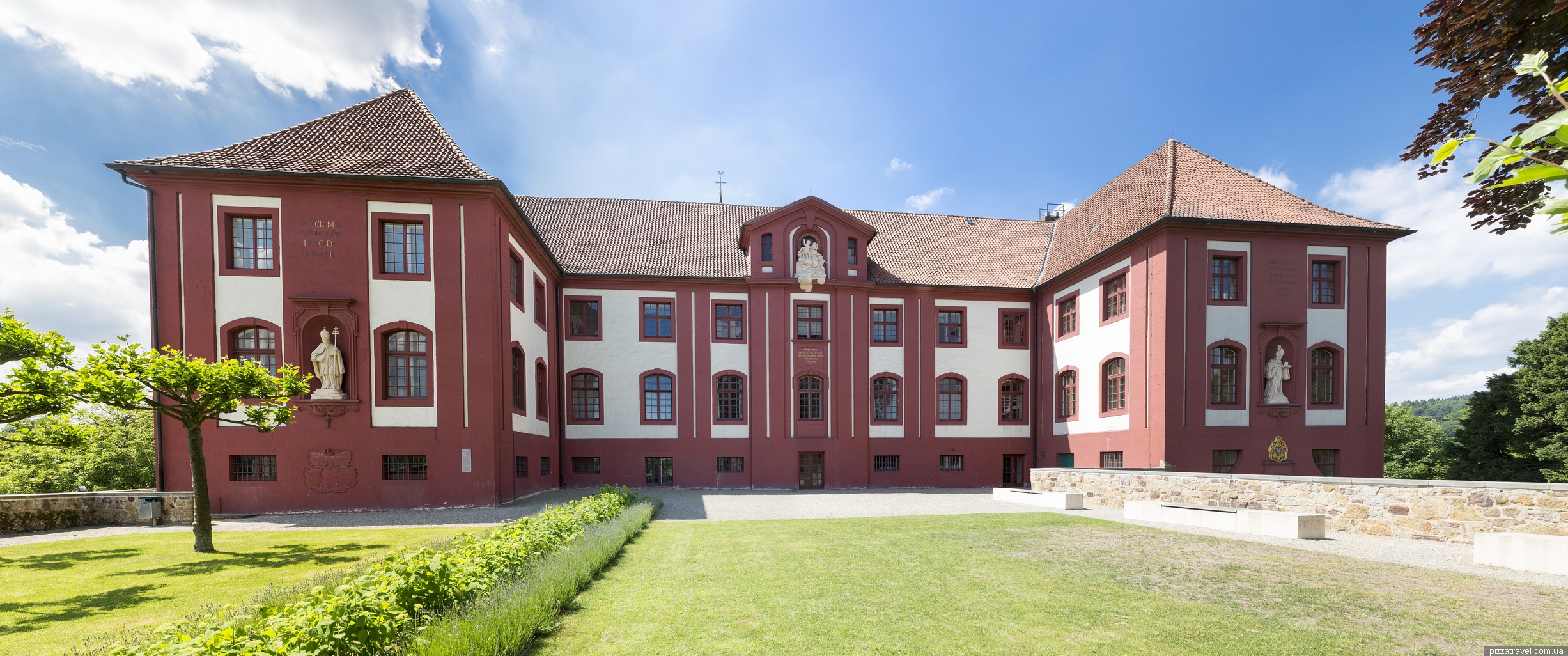 N 52 09.452 E 8 02.380. Від Osnabrück Hbf на автобусах 465 (Glandorf) або 466 (Bad Rothenfelde) до зупинки Rathaus, Bad Iburg або однієї з двох наступних після цієї. Автобуси ходять кожні 30 хвилин.
