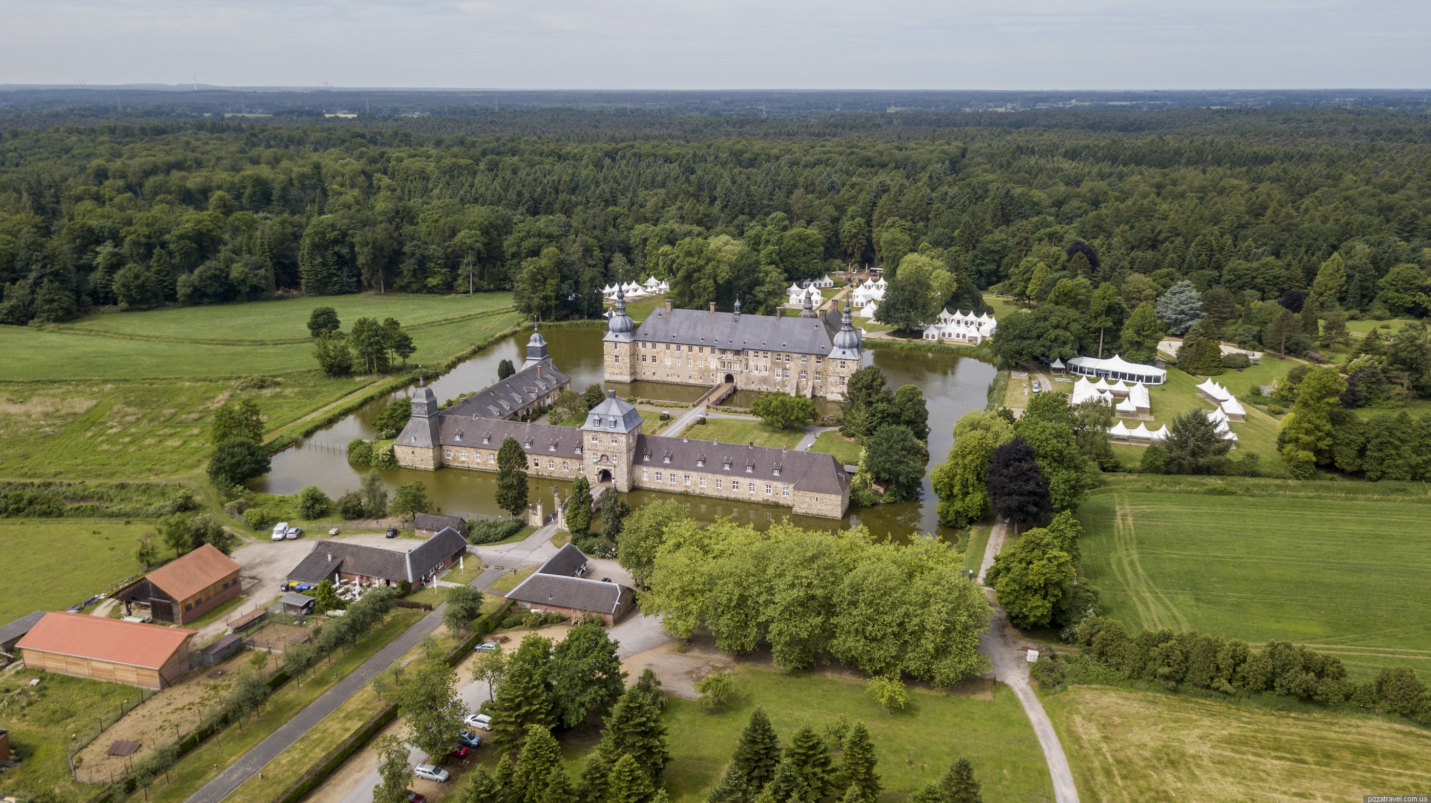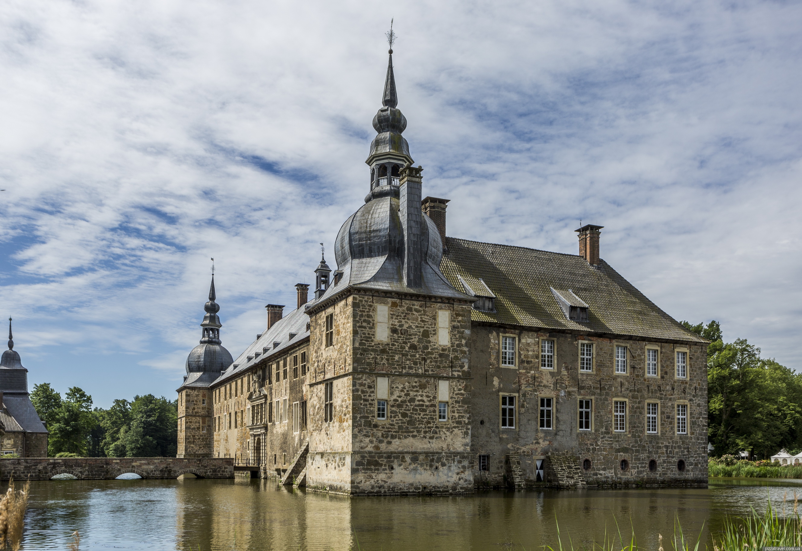 На ближньому острові розташовані адміністративні і сільськогосподарські споруди, на дальньому - житловий замок. Протягом останніх трьохсот років замок належить сім'ї Merveldt. У 1741 році були побудовані башти, що збереглися до цих пір. У 18 столітті були перебудовані основні будови.