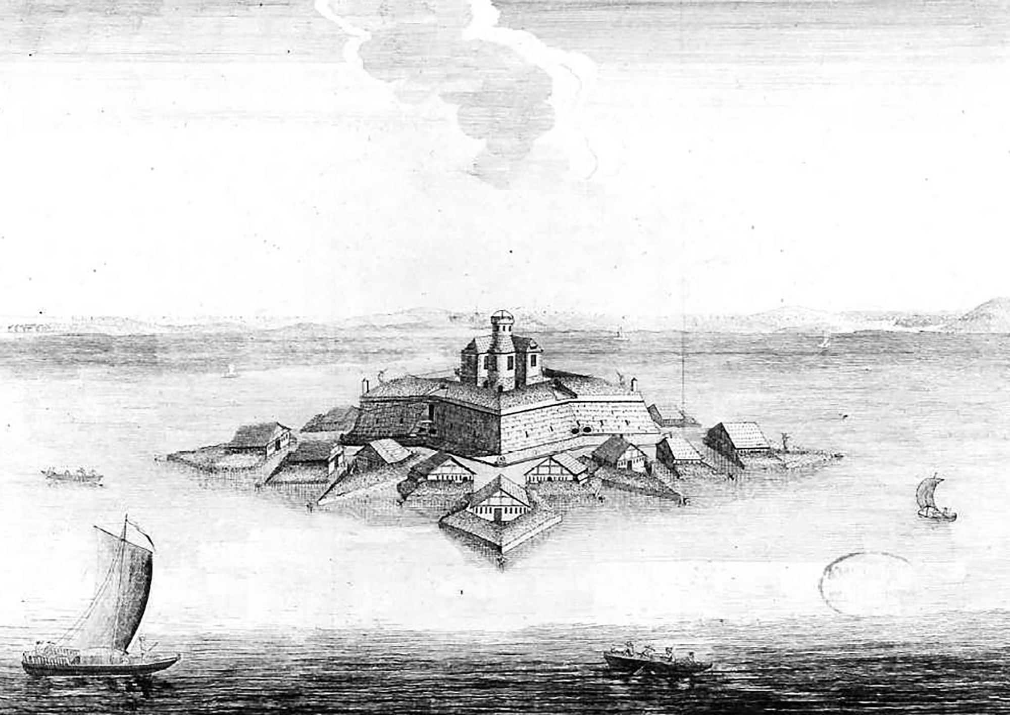 Для будівництва острова населення графства 5 років поспіль, щодня, привозило по 30 кубічних метрів піску, гравію та каменю. Влітку на човнах, а взимку на санях. На випадок війни тут могли розміститися 800 солдатів і 166 гармат. Хоча, мені важко уявити, як вони тут поміщалися. Був і регулярний гарнізон у 250 осіб, який постійно зменшувався через економію і становив лише 22 людини 1782 року.
