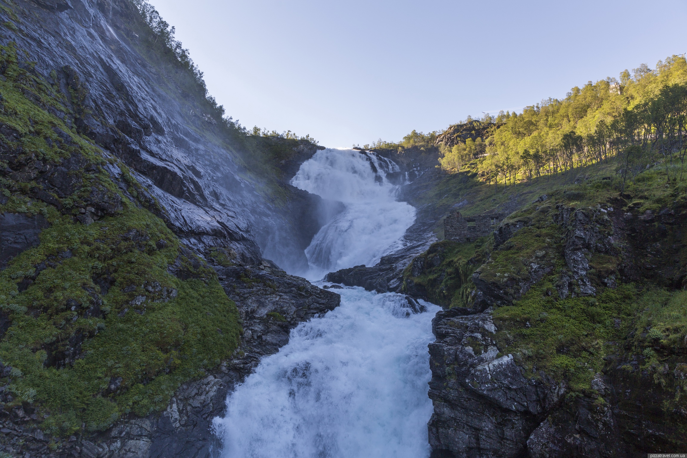 По дорозі поїзд зупиняється біля водоспаду Кьосфоссен (Kjosfossen), висотою 225 метрів. На ньому встановлені генератори, які і живлять залізницю.