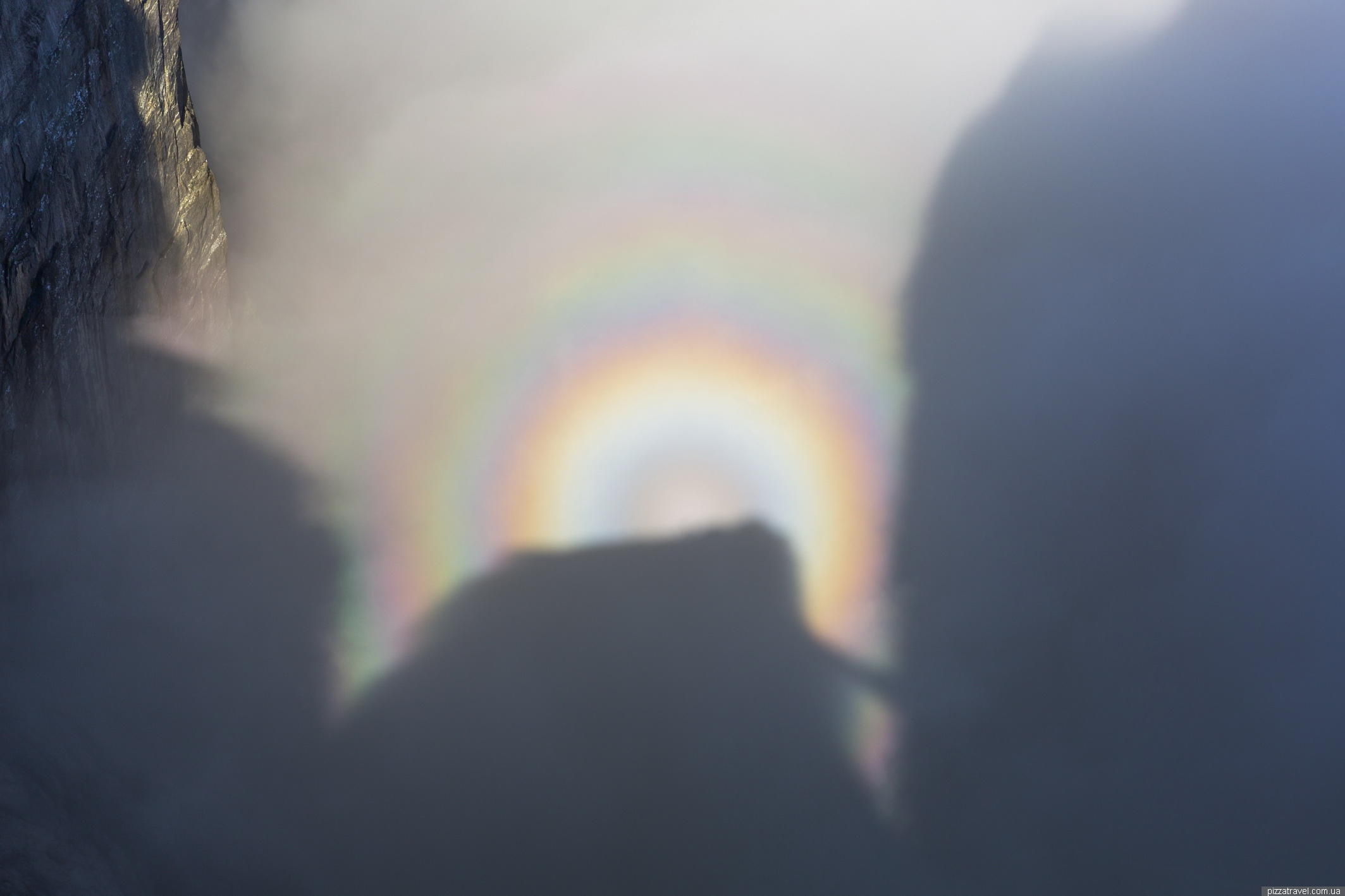 Нам пощастило і вперше ми змогли спостерігати цікаве явище - Брокен спектр або Глорію.