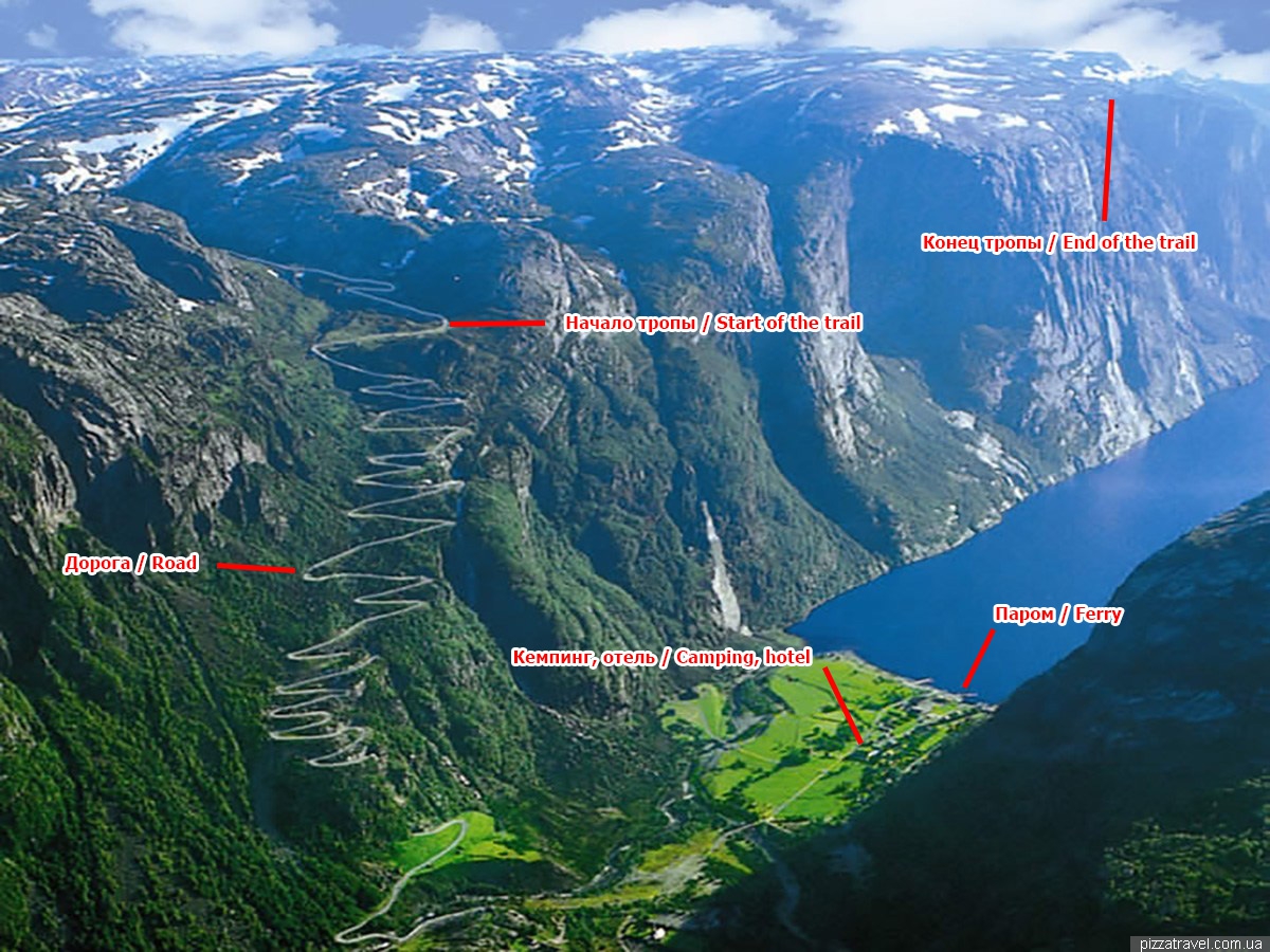 Дістатися до старту стежки не так просто. Справа в тому, що поруч немає ніяких великих, і навіть невеликих, міст. Поїздка з Ставангера через Sinnes і Suleskard на автомобілі займе не менше двох з половиною годин.