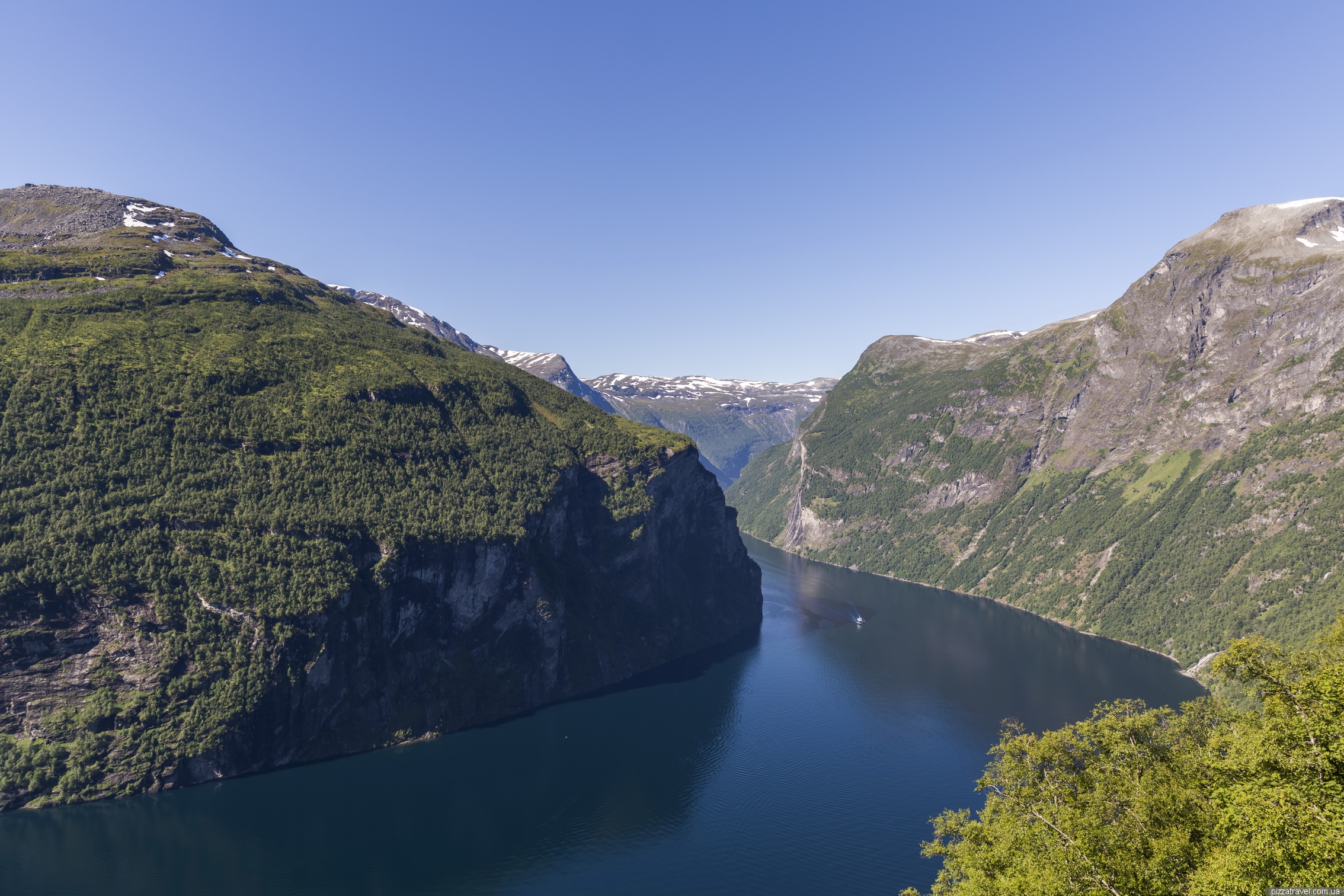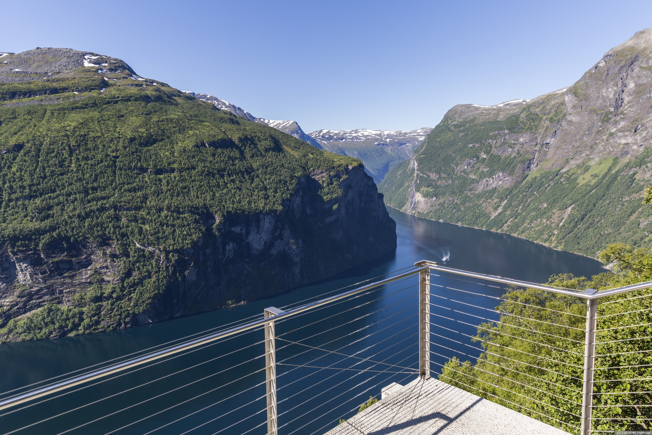 Обладнаний оглядовий майданчик на "Дорозі орлів" (Eagle road) над Гейрангер фіордом. Дорога являє собою крутий серпантин, відкритий в 1955 році. До цього року доступ в село Гейренгер був тільки по воді. В даний момент дорога є популярним туристичним маршрутом.