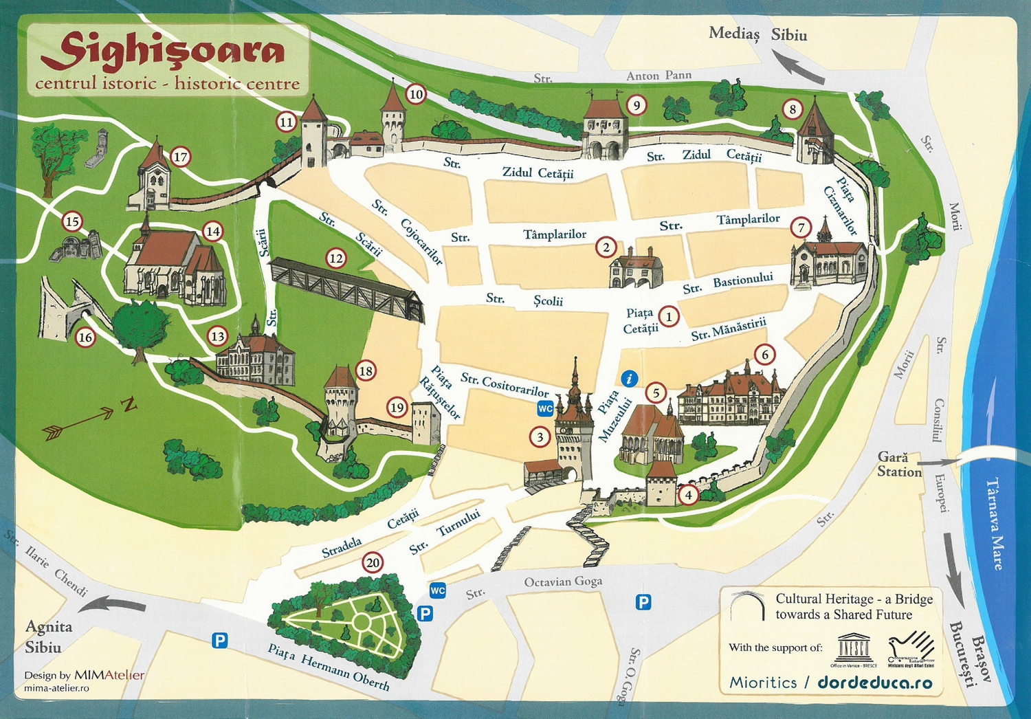 Румунським місто стало тільки після першої світової війни. А заснували його німецькі колоністи, вони ж побудували у 1556 році головну пам'ятку - вежу з годинником. У ній в середні століття розташовувалися мерія, суд і архів.