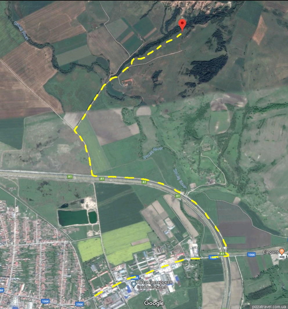 Ось карта, як їхати з міста Sebeş на автомобілі, дороги там грунтові. Кінцева точка