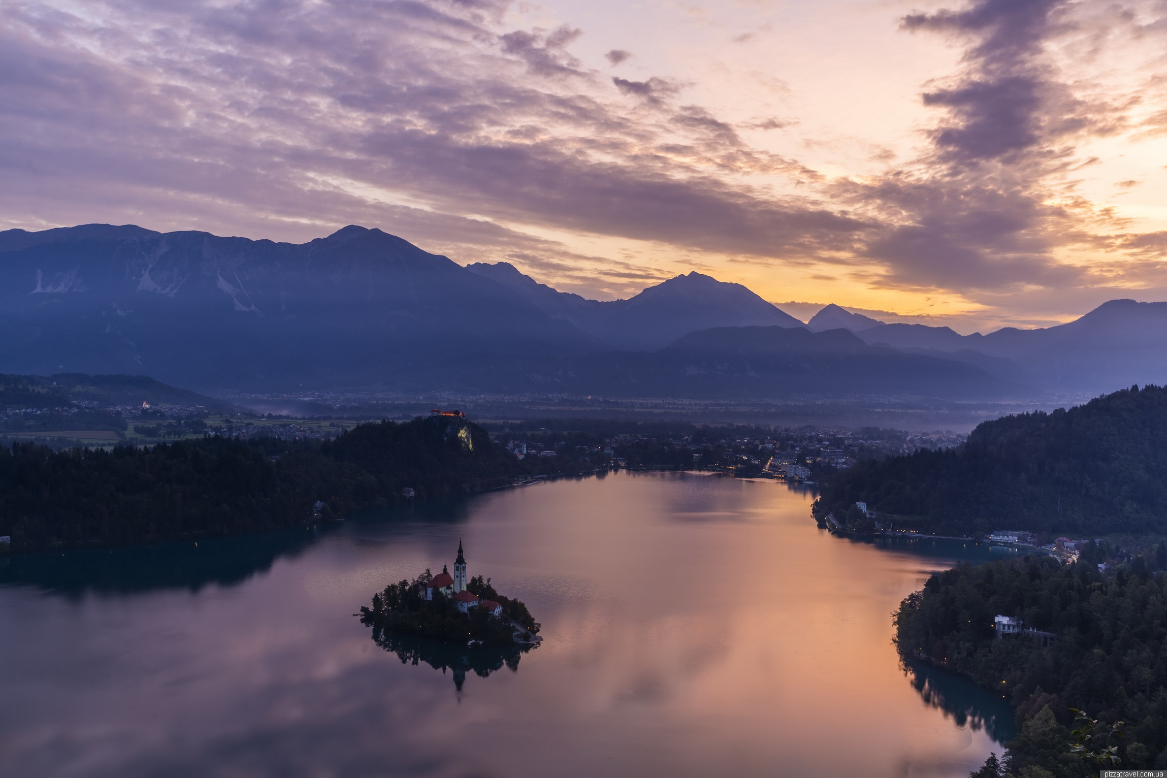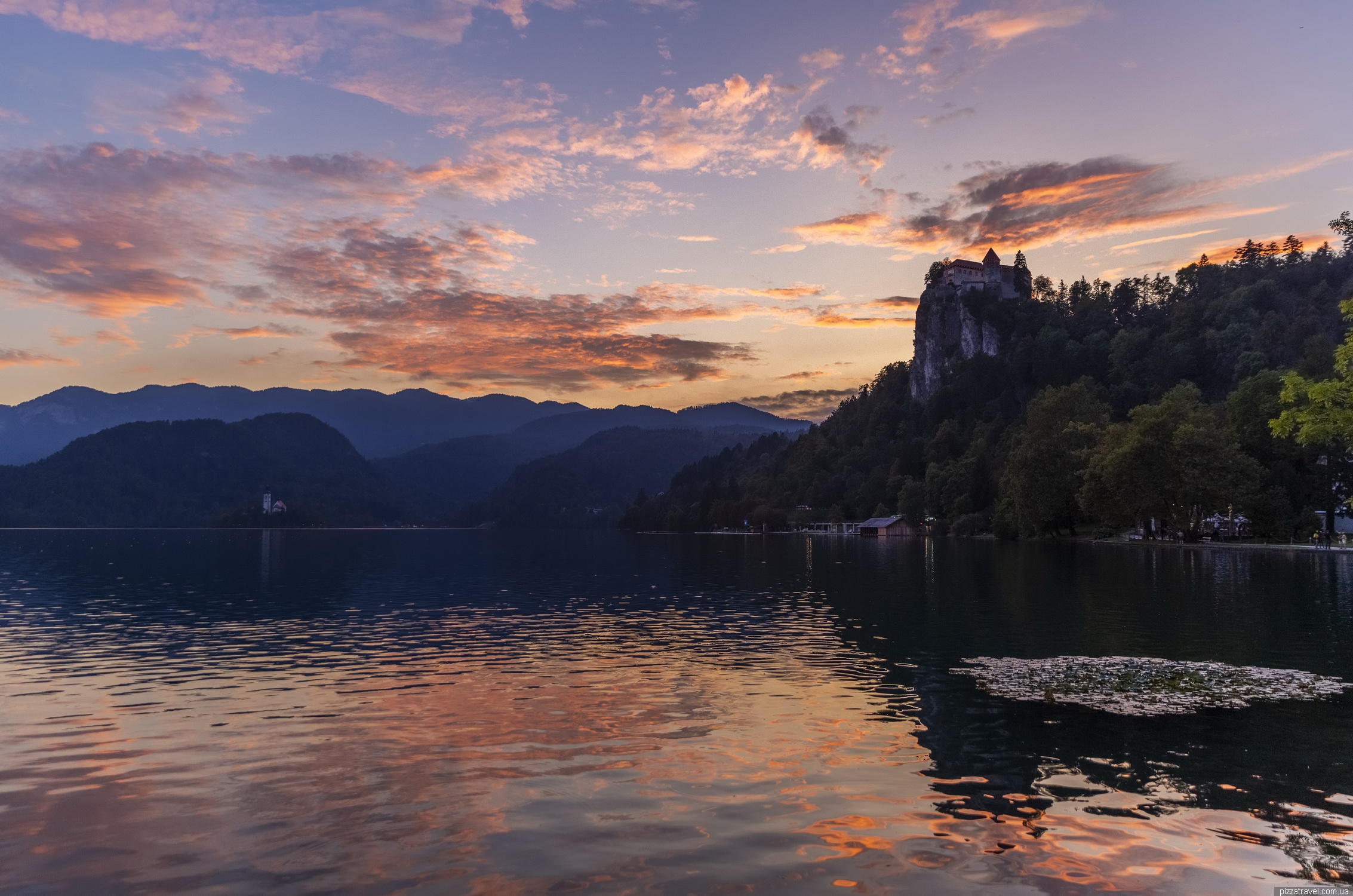Увечері з Бледа відкривається чудовий вид на захід сонця і замок.