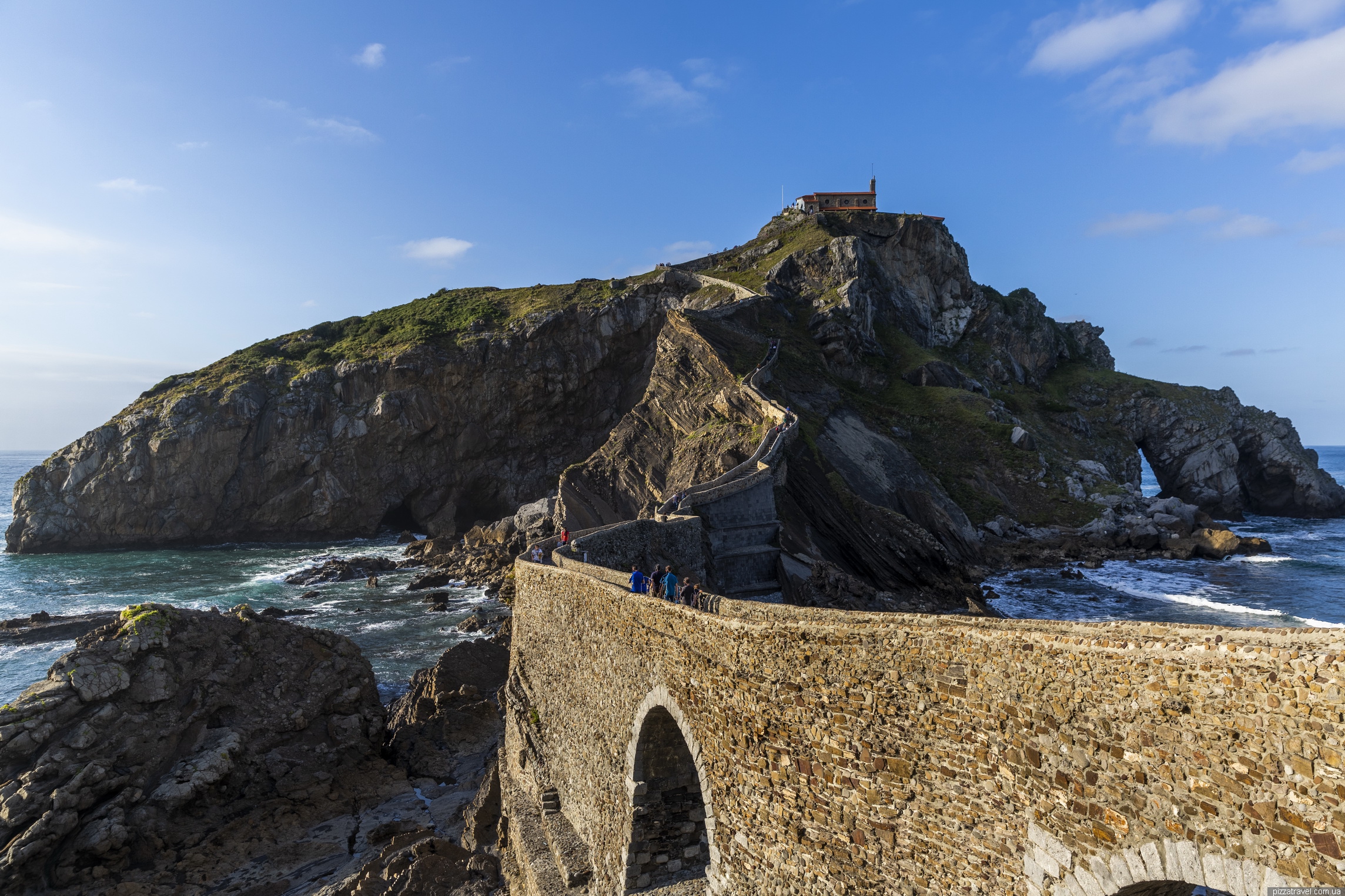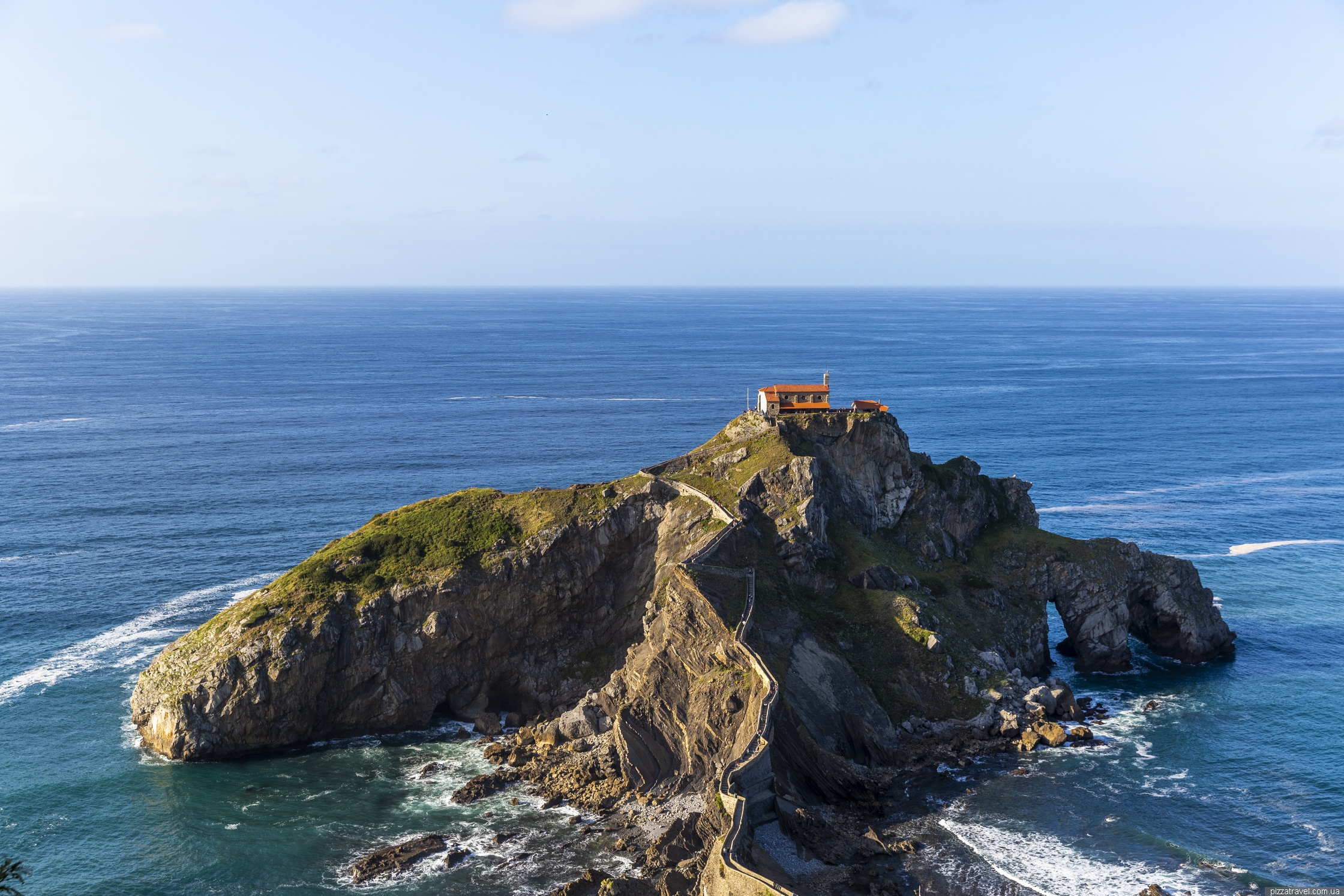 Як дістатися: парковка N 43 26.451 W 2 47.044. З Більбао (Plaza Moyua Square) їдьте на автобусі A3518 (карта) до кінцевої станції San Pelaio в Bakio. Автобуси ходять часто. Звідти до парковки Гастелугаче 2.2 км пішки вздовж моря, перепад висот 160 метрів. Тому тут можна заощадити сили і взяти таксі. Тут же можна спробувати пересісти на автобус A3524 на Bermeo (карта), він йде до самої парковки Гастелугаче (зупинка Gaztelu Begi).