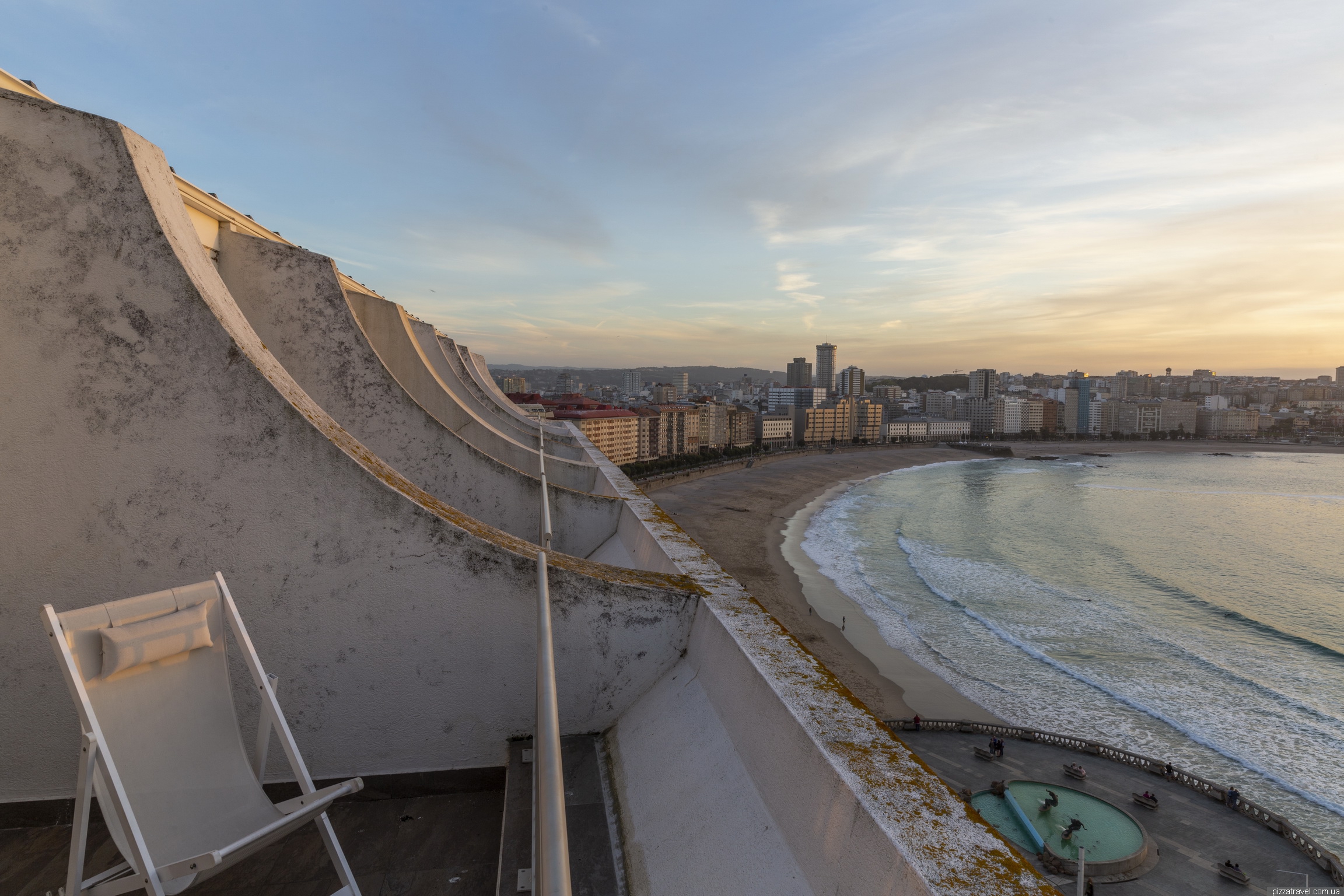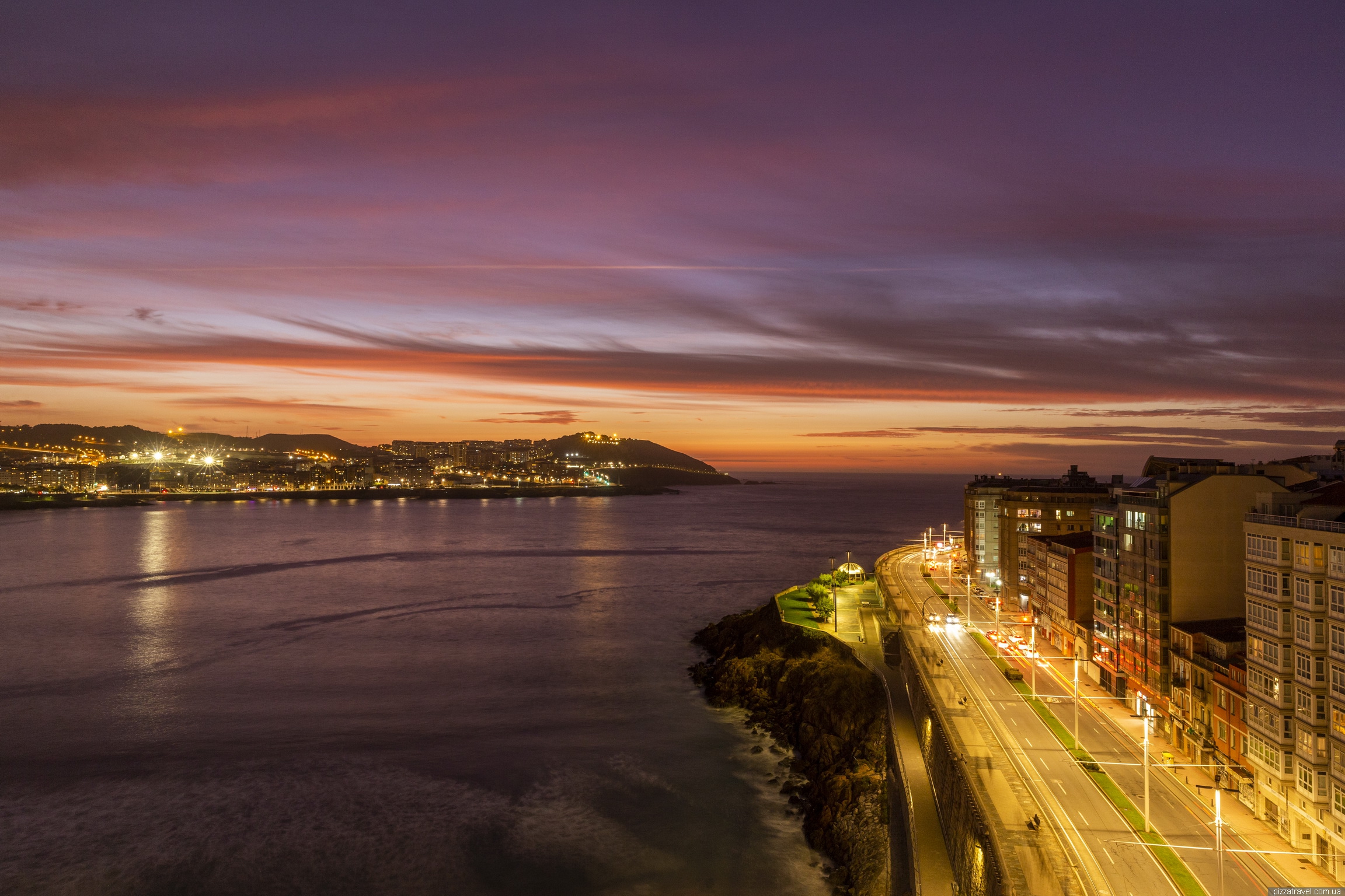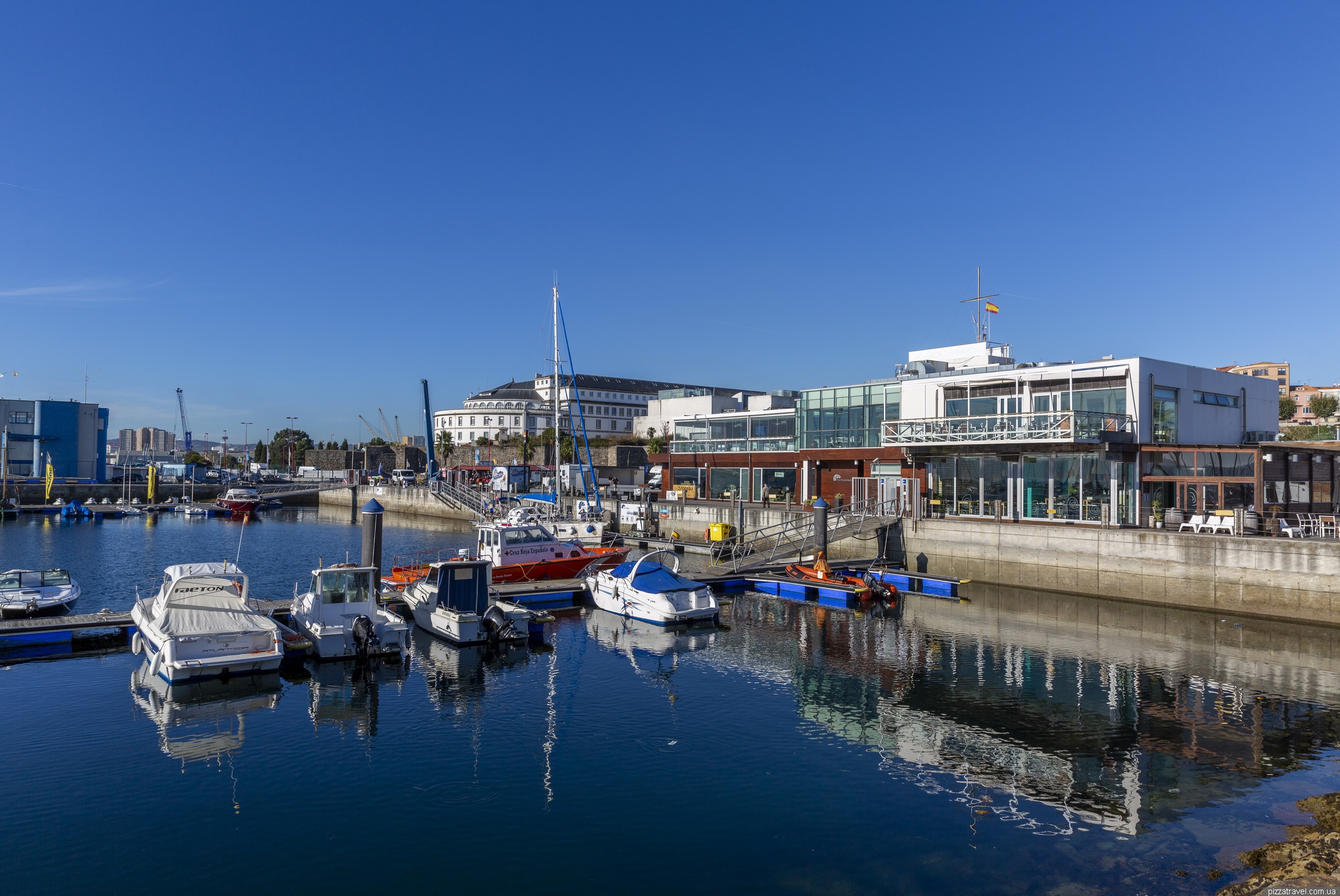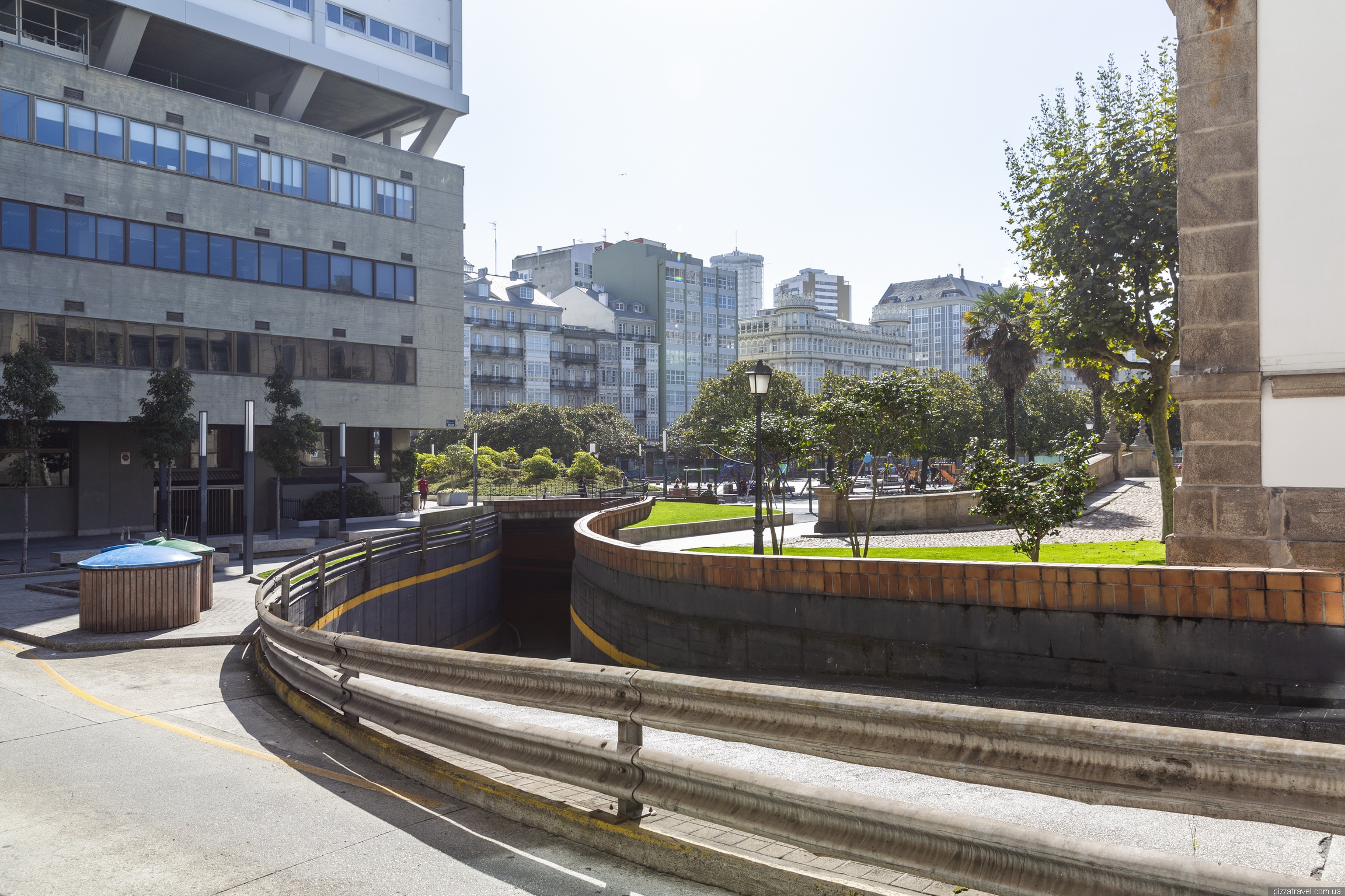 На набережній можна побачити досить багато засклених будівель, характерних для цього регіону. Така архітектура допомагає захиститися від дощу і вітру. Відразу за ними розташована центральна площа міста Плаза де Марія Піта (María Pita).