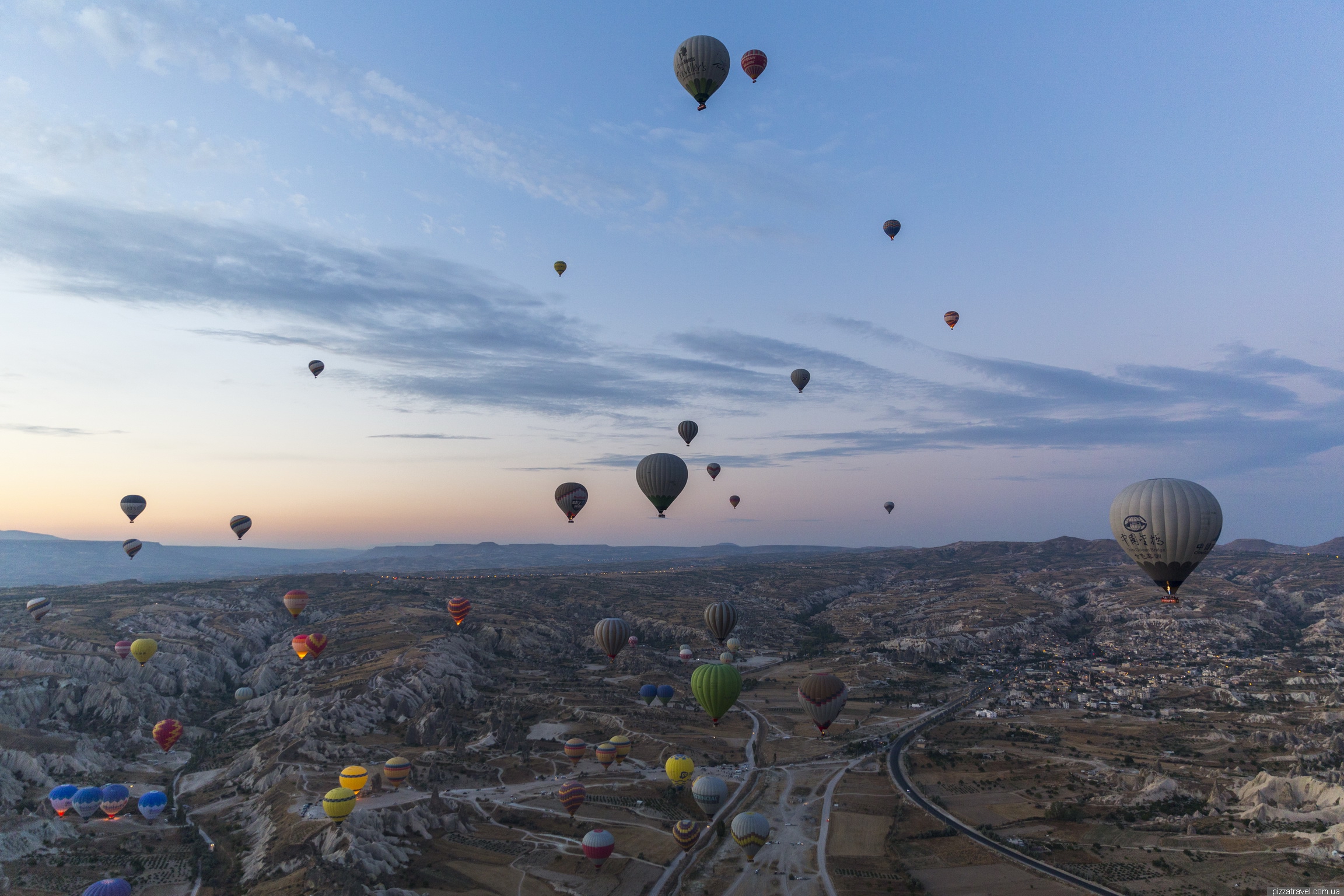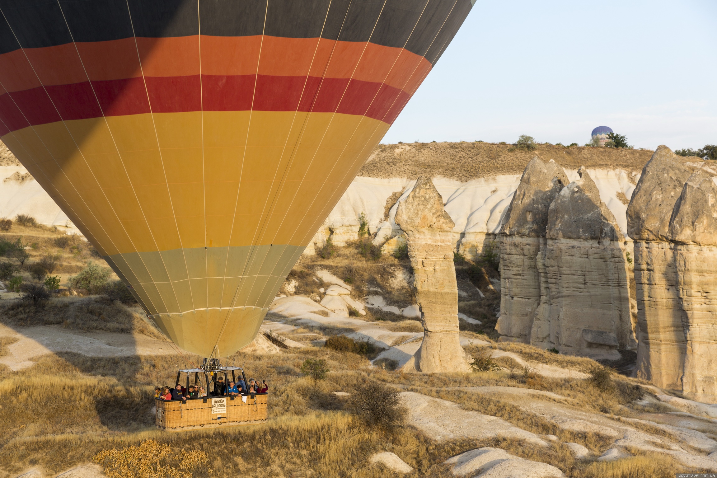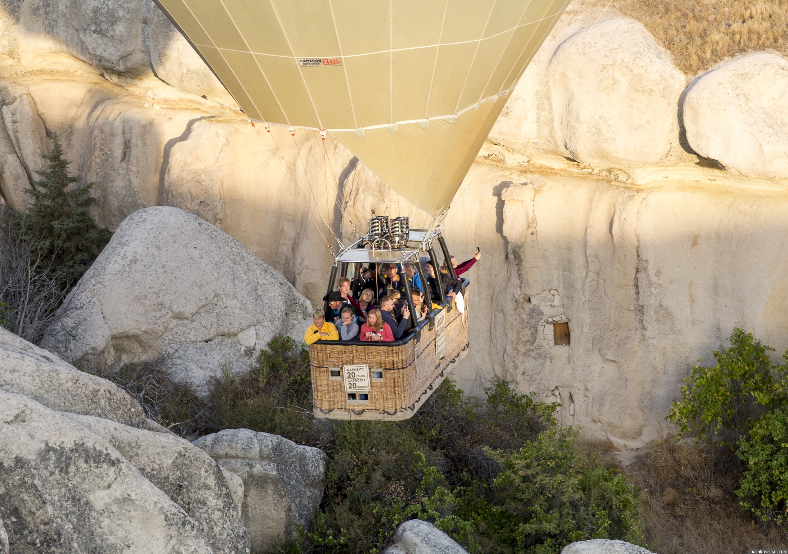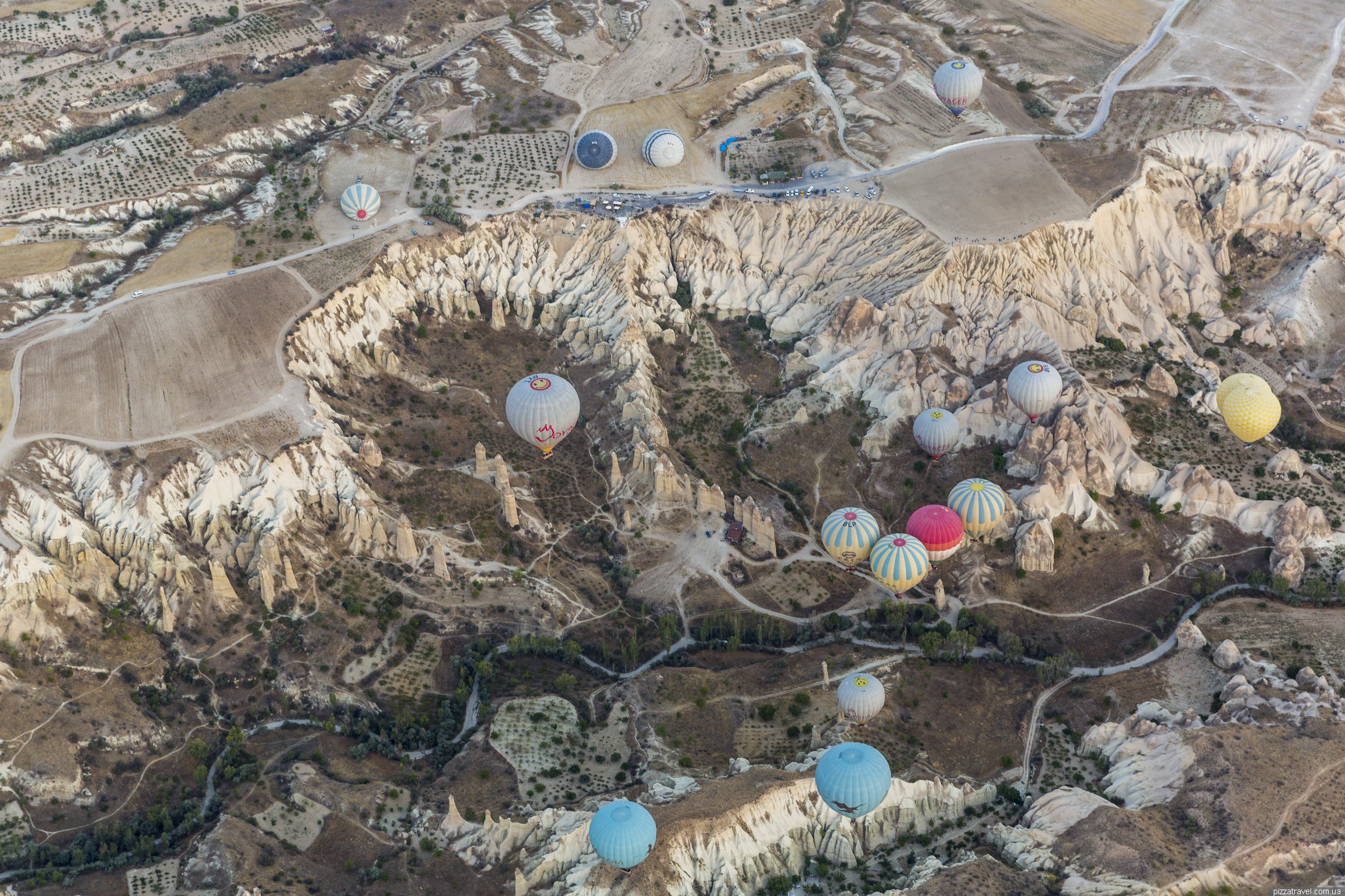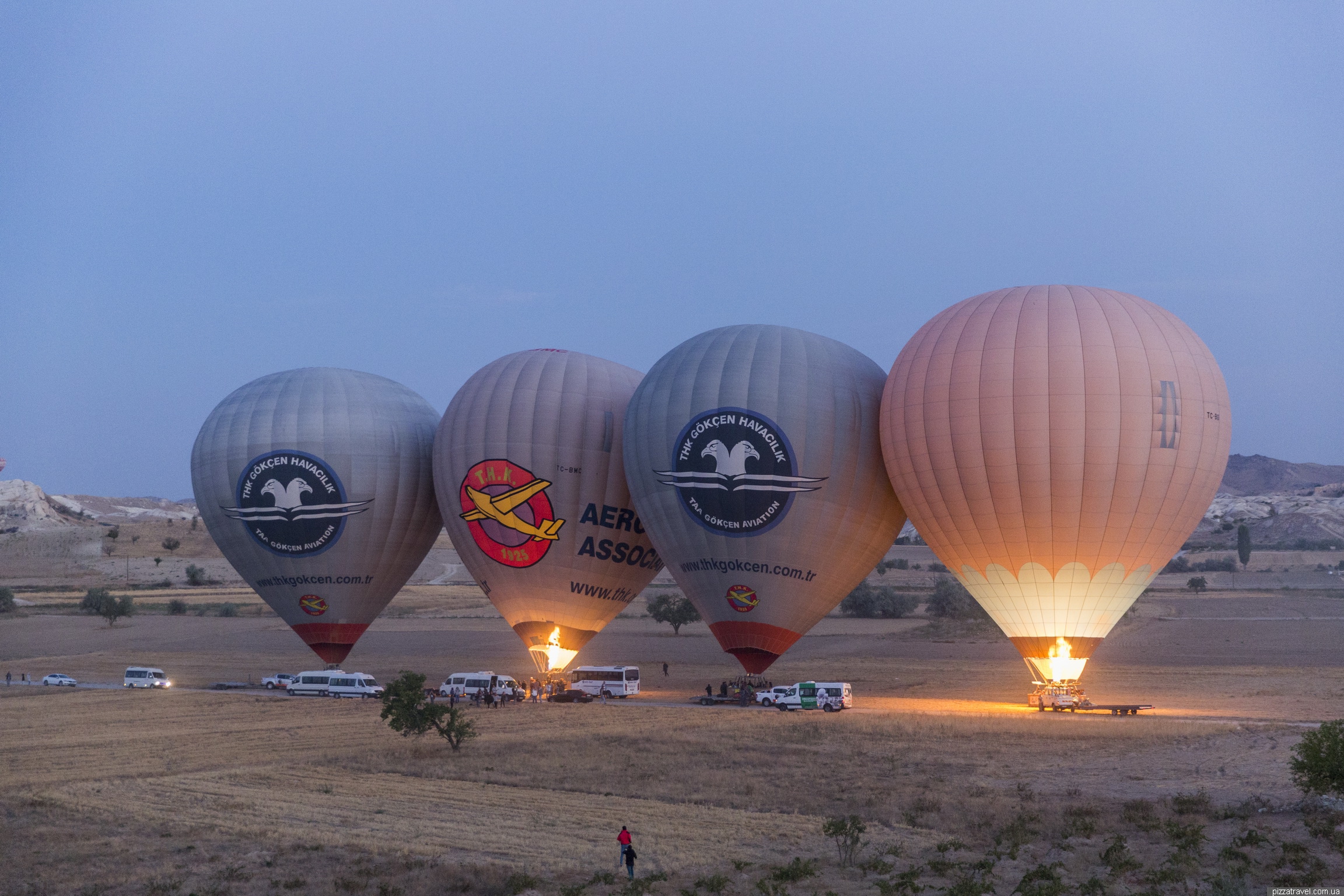 Зараз польоти організовують понад два десятки компаній. Дві основні: це найстаріша і найвідоміша Kapadokya Balloons (http://kapadokyaballoons.com/en/index.html) і найбільша Anatolian Balloons (https://www.anatolianballoons.com/). Ми вибрали останню просто тому, що побачили їх офіс уздовж дороги тут N 38 38.639 E 34 49.099. Якщо ви без машини, то вам не обов'язково туди їхати, у всіх туристичних центрах повно представників на вулицях.