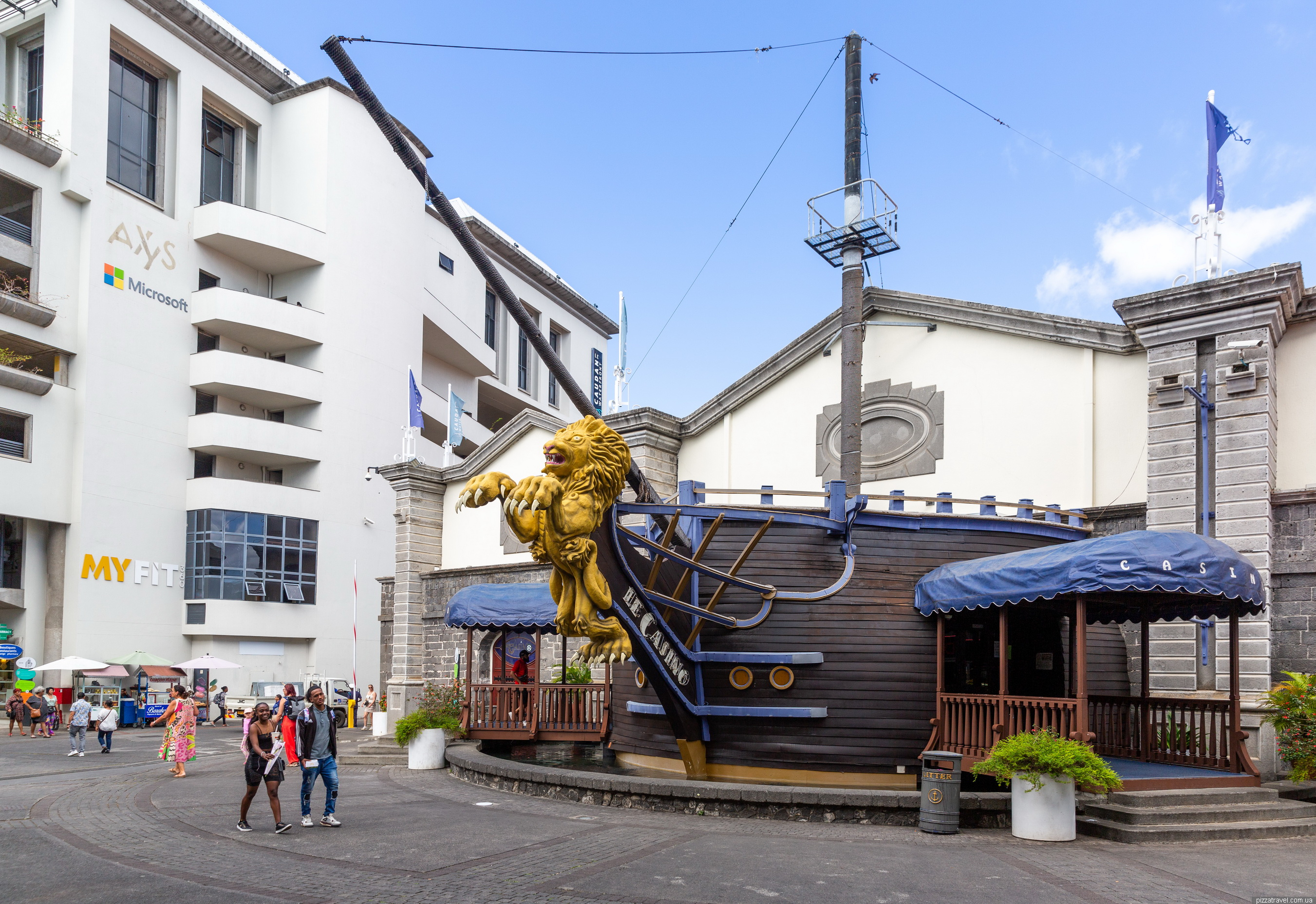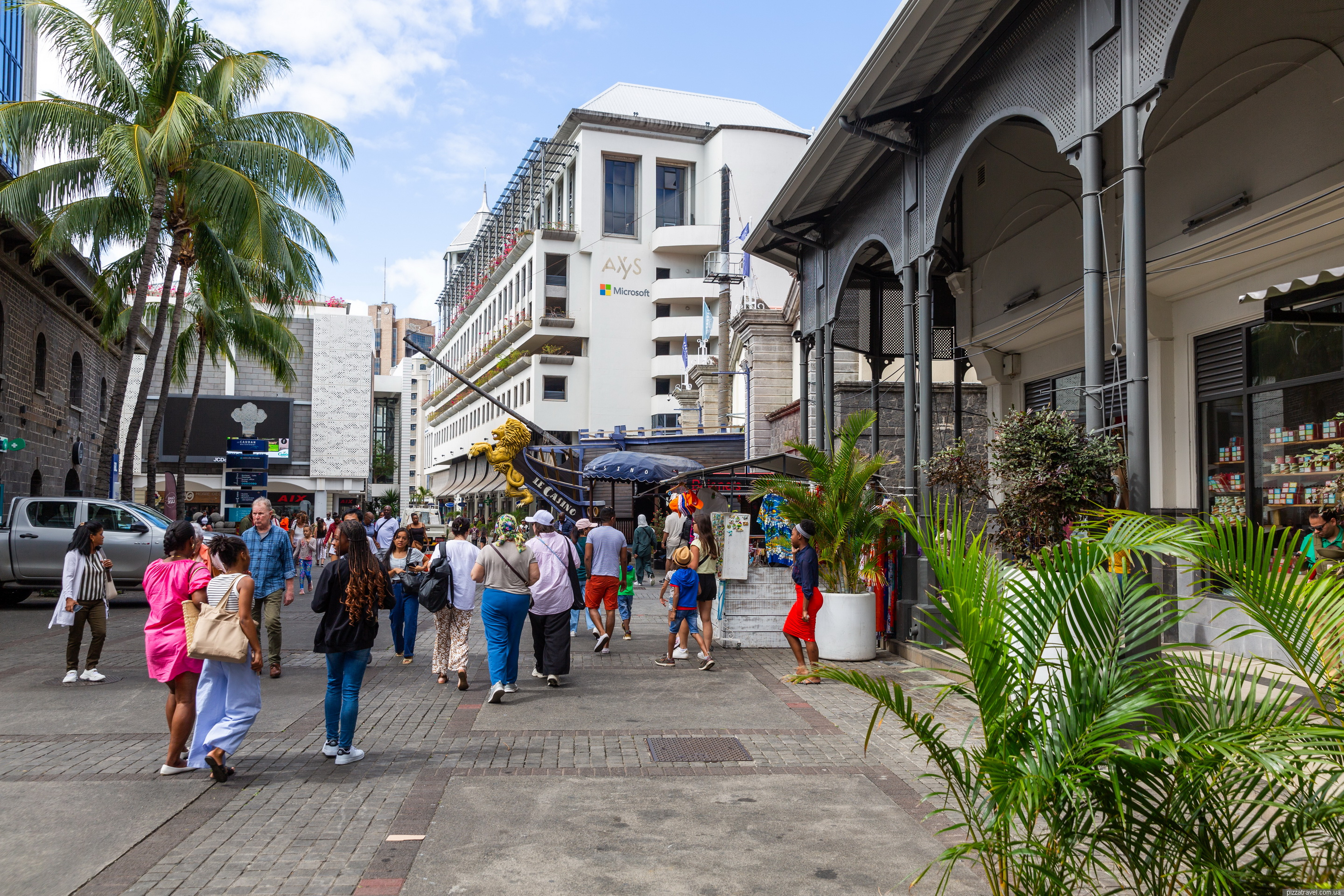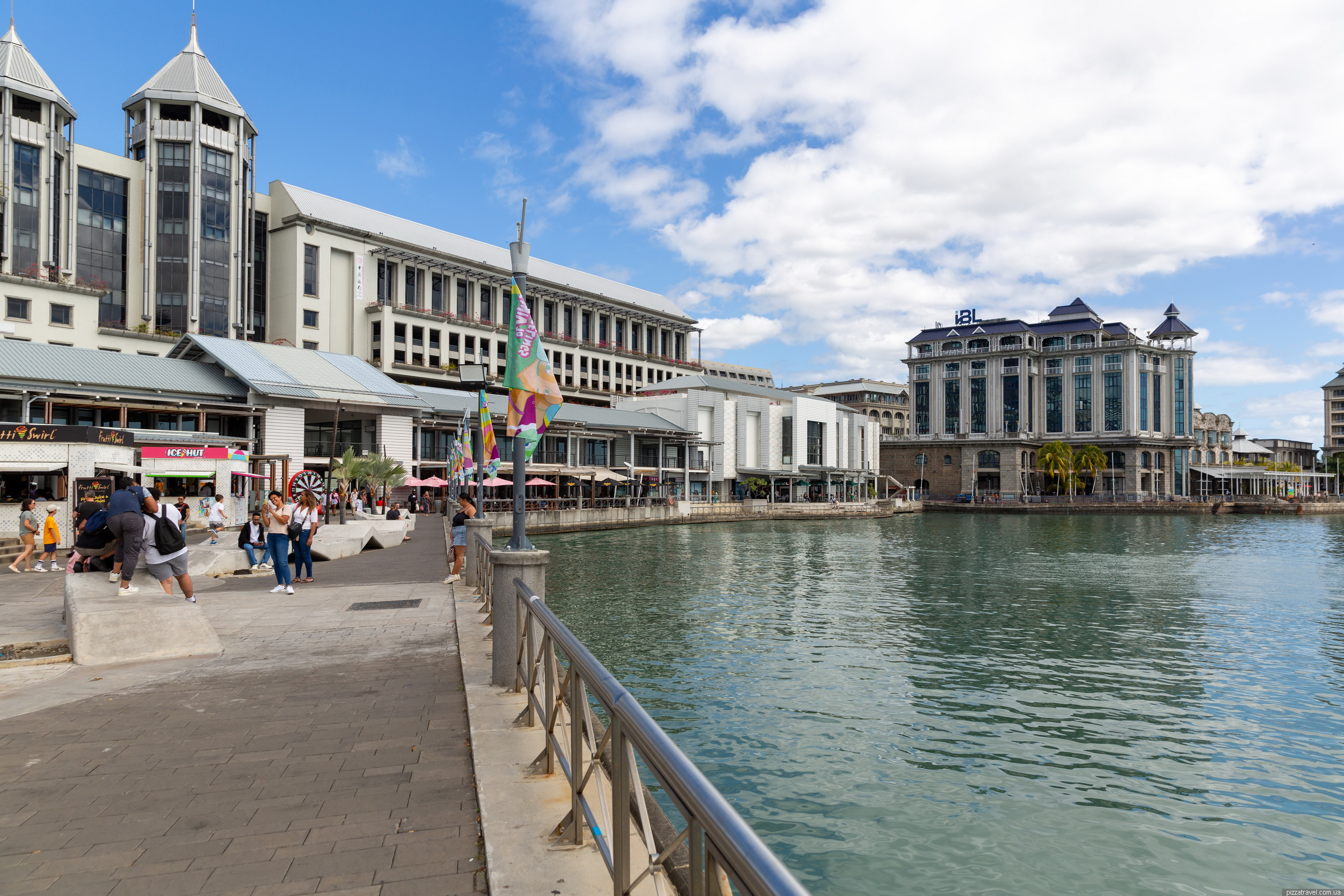 Набережна Caudan Waterfront нам чимось нагадала Скоп'є, тут немає скульптур, але архітектура схожа і все залите бетоном. По суті, це єдине місце в Порт-Луї де можна погуляти європейському туристу навіть з дітьми. Район побудували у 1980-х роках на місці старих портових складів і доків. Проєкт став частиною великої реконструкції портової території, щоб перетворити її на сучасний туристичний і комерційний центр.